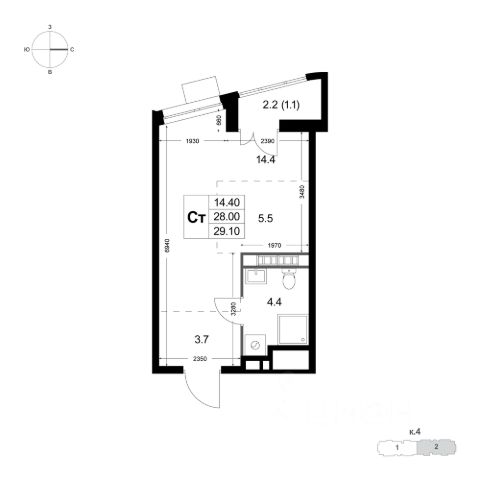 В ЖК "Легенда Марусино" продаётся студия -к квартира 23.3 кв. м, расположенная на 4 -м этаже 7 -этажного дома.