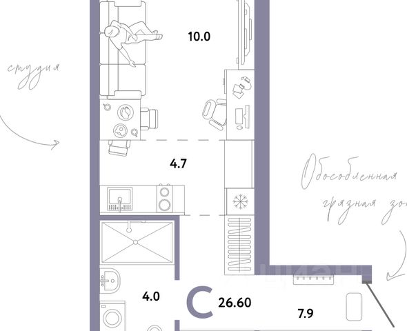 Цена указана с учётом скидки при 100%-й оплате, несубсидированной ипотеке, рассрочке (кроме программы "Рассрочка 0%"). В жилом квартале, расположенном на границе с природным заказником "Долина реки Очаковки", продаётся студия площадью 22.30 кв.м без отделки. Квартира расположена на 2 этаже 24-этажного корпуса 7 в жилом комплексе бизнес-класса Level Мичуринский (компания Level Group/Левел групп). Отличная транспортная доступность - 10 мин. пешком до станции метро "Мичуринский проспект" - 15 мин. пешком до станции метро "Аминьевская" - 7 мин. на авто до МКАД - 10 мин. на авто до ТТК - 15 мин. на авто до Москва-Сити Продуманный архитектурный проект - Выразительная архитектура от известных бюро: корпуса 1-6 - СПИЧ, корпуса 7-13 - Borisov Architects; - Из окон открываются живописные виды на парки, Москва-Сити и МГУ; - Высокие потолки до 6,35 м; - Стильные лобби с окнами в пол и высокими потолками до 4,7 м; - С каждого этажа дома на лифте можно спуститься в подземный отапливаемый паркинг. Расположение Level Мичуринский строится в одном из самых зеленых районов Москвы - Очаково-Матвеевское. Этот уголок столицы идеален для поддержания здорового образа жизни. В шаговой доступности от проекта находятся заказник "Долина реки Очаковки" - 1 мин. пешком и Очаковский парк - 7 мин. пешком. На велосипеде можно добраться до таких парков, как "Событие", парк Олимпийской деревни, парк 50-летия Октября и парк Школьников. В 15-минутной доступности на авто расположено более 30 детских садов (из них 14 в пешей доступности), 32 школы (из них 13 в пешей доступности) и 14 вузов. В ближайшем окружении работает более 25 медицинских учреждений, 11 спортивных клубов и 22 продуктовых супермаркета. Внутренняя инфраструктура На территории жилого комплекса строится три детских сада и школа. На первых этажах домов откроется супермаркет, фитнес-центр, ресторан, кафе и другие сервисы. Подземные этажи займут паркинги: трехуровневые в этапах 1 и 2, одноуровневый в этапах 3 и 4. Преимущества проекта - 4,5 га благоустроенной территории с видовым мостом, уличным кинотеатром, зонами для тихого отдыха, работы, воркаута, площадки для петанка, футбола, настольного тенниса и пляжного волейбола; - Дизайнерские лобби с панорамным видом на двор, мойками для лап животных и комфортными зонами ожидания. - Безопасность жителей: круглосуточное видеонаблюдение всех зон общего пользования (лобби, лифты, паркинги, детские площадки), система контроля доступа, управление видеодомофоном через мобильное приложение, единый ключ доступа на территорию жилого комплекса. - Технологии и комфорт: высокоскоростной Wi-Fi в лобби и на придомовой территории, автоматическая система контроля и учета ресурсов, абонентская связь с консьержем, распознавание номеров автомобилей при въезде/выезде в/из паркинга.