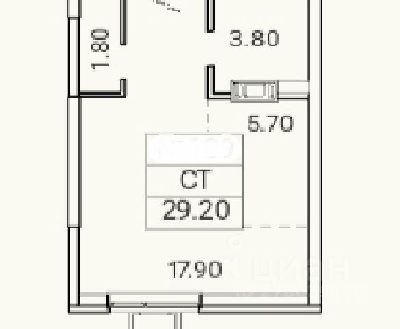 Квартира общей площадью 25,45 кв.м, находится на 14 этаже 17-этажной секции.
