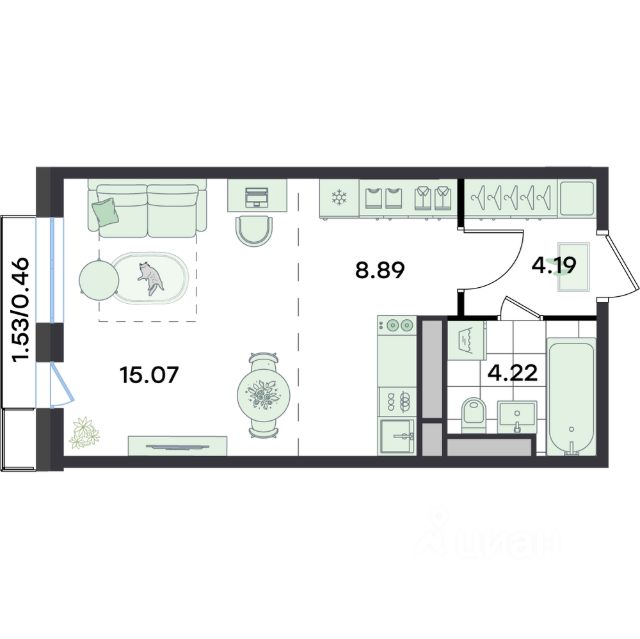 Продаётся студия в строящемся доме (Театральный, к2), срок сдачи: II-кв. 2026, общей площадью 30.3 кв.м., на 4 этаже. Бутик-квартал "G3 Театральный"