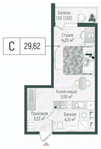 Продаётся студия 472, площадью 24,33 м², на 2 этаже в ЖК "Ильинойс" корпус 3. Стоимость — от 6577984 руб. Квартира без отделки, планировка односторонняя, окна во двор.