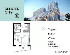 Прямая продажа от застройщика. Продаётся студия общей площадью 34.65 м² с предчистовой отделкой в ЖК "Селигер Сити" на 29-м этаже башни Лисицкого. Корпуса четвертой очереди ЖК "Селигер сити" названы в честь трех великих представителей науки и архитектуры, новаторское видение которых — слишком смелое для своего времени — нашло воплощение в уникальных домах жилого комплекса. Вдохновленные авангардными идеями знаменитого советского архитектора Эля Лисицкого, архитекторы создали яркий центр притяжения всего района, задающий новый стандарт жизни в современном мегаполисе — две высокие "Башни Лисицкого" с современной интерпретацией горизонтального небоскреба. Преимущества проекта: - 2 минуты пешком от метро "Селигерская" - Архитектурное решение от голландского бюро MLA + - Одна из самых больших придомовых территорий в Москве - Огороженная охраняемая территория, круглосуточное видеонаблюдение - Европейский подход к благоустройству от бюро Wowhaus: появится парадный бульвар, аллея с фонтаном и арт-объектом, что дополнит уже сформированное благоустройство: детские площадки для разных возрастов, площадки для воркаута, дорожки для бега и пеших прогулок, места для отдыха - Два детских сада, школа начальных классов и центр доп.образования - Искусственный пруд на территории комплекса с благоустроенной набережной и мостом - Продуманная концепция инфраструктуры: уютные кафе и рестораны, супермаркет, магазин фермерских продуктов, бытовые службы, салон красоты, детские сады - Ультрасовременные инженерные решения - Подземный паркинг с зарядными станциями для электромобилей, постами подкачки шин и келлерами - Лобби по индивидуальному дизайн проекту от европейского бюро Вlank Architects: лаунж-зоны, ресепшен, колясочная, помещение для мытья лап животным после прогулки - Надежный девелопер с опытом премиальных проектов MR Расположение комплекса: - 2 минуты от станции метро "Селигерская" - 7 минут на машине до станции метро "Окружная" - Предусмотрен удобный выезд в сторону ТТК (всего 9 км или 15 минут без пробок) - МКАД в 10 минутах на машине Компания MR предлагает своим клиентам специальные условия приобретения квартир в рамках программ ипотечного кредитования от банков-партнеров. Купить квартиру-студию в новостройке рядом с метро Селигерская.