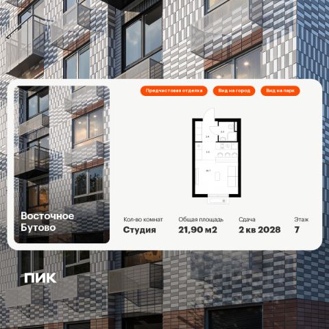 Продается квартира-студия в жилом комплексе комфорт класса "Домодедово парк" площадью 33.5 кв.м на 3 этаже 17 этажного дома. Квартира с предчистовой отделкой (whitebox)