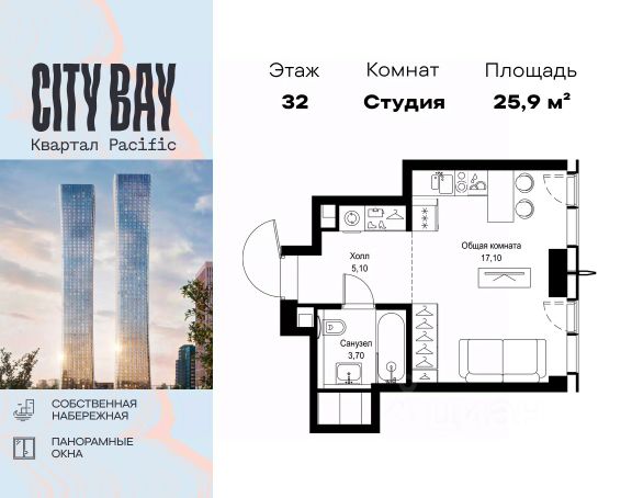 ЮТУ-камерные небоскребы бизнес-класса с исключительной архитектурой, видовыми квартирами и подходом к большой воде-благоустроенной набережной канала имени Москвы. Проект ЮТУ создает идеальный баланс жизни в городе. Это приватный оазис, где в любой момент можно сменить контекст и выбрать любой из тысячи маршрутов к активному отдыху и ярким впечатлениям. Локация премиум-класса • Первая линии в прибрежной части Химкинского водохранилища • Исключительно тихий и зелёный район Южное Тушино • За 2 минуты можно спуститься к воде, за 10 минут найти зеленые парки и готовую инфраструктуру, за 30 минут доехать до Кремля Концепция проекта • Две футуристичные башни, соединенные торговой галереей от бюро ATRIUM • 60 неповторяющихся планировок: квартиры с угловым "плавным" панорамным остеклением, мастер-спальнями и гостиными до 39м² и просто очень большие квартиры площадью до 128,6 м² • Беспрецедентная коллекция видов-в проекте 80 % видовых квартир Чувство эксклюзивности • Своя приватная жилая экосистема -только для резидентов домов • Лаунж-терраса на крыше • Пространство скрыто от посторонних глаз-с трех сторон его окружают строения проекта Прогрессивные технологии • 3-уровневая система безопасности (Face ID, BLE-метки, видеонаблюдение) • Умный паркинг с распознаванием номеров Проект федерального девелопера ТОЧНО-из ТОП-3 застройщиков России. Компания в проекте реализует ответственный подход к развитию пространств для благополучной жизни человека. И что в ЮТУ особенное воплощение приобретает концепция человекоцентричности, как заметная грань девелопмента ТОЧНО. Квартира-студия в новостройке рядом с метро Тушинская.
