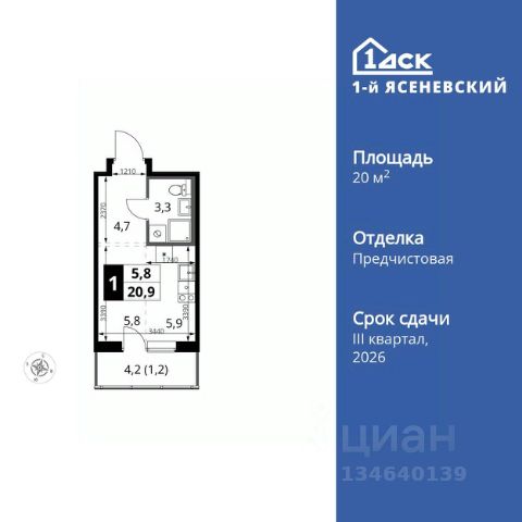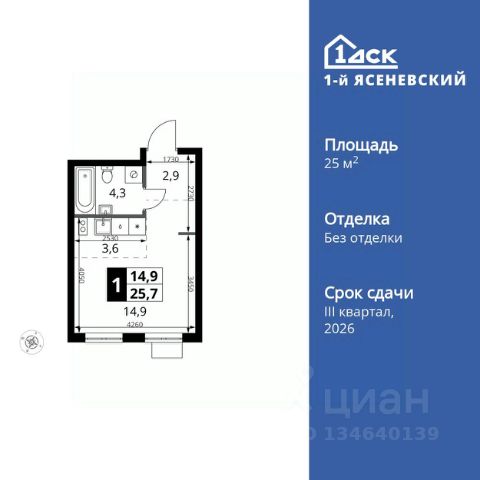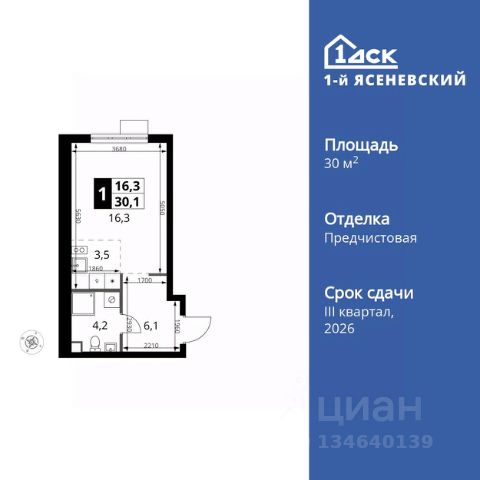 Прямая продажа от застройщика! Жилой Комплекс класса Комфорт Плюс. Продаётся квартира-студия номер 558 общей площадью 30.1 кв.м. на 15-м этаже 18 этажного здания. Отделка Whitebox. Особенности квартиры: - Квартиры рядом с метро - м. Корниловская 9 мин пешком - 63 га лесопарка за окнами - Школа c it-кластером и бассейном. 2 детских сада - Линейная планировка - максимальная функциональность и удобство. - Просторная ванная - место для расслабления и уединения. - Ниша под шкаф - компактное и удобное место для вещей. Квартира с предчистовой отделкой (White box). Вам не придется заниматься черновыми и трудоёмкими работы, а чистовую отделку и дизайн - сделайте на свой вкус. Информация о комплексе: В жилом комплексе комфорт-плюс класса "1-го Ясеневского" доступны преимущества двух стилей жизни. Ведь в пешей доступности метро, школа с 25-метровым бассейном и IT-кластером и при этом целых 63 га благоустроенного Троицкого лесопарка под окнами, где так приятно дышать свежим воздухом и слушать пение птиц. Собственная закрытая территория "1-го Ясеневского" представляет собой уютный оазис. Здесь и зеленый освещенный бульвар для прогулок, система велодорожек, маленькая городская площадь, кафе, пекарни и кофе поинты. А еще дворы без машин и многоэтажная парковка. Изюминка территории - фруктовые деревья во дворах и городские сады. "1-й Ясеневский" - всего в 1 км от МКАД, на территории новой Москвы. Жилой комплекс, где есть все необходимое для современного человека. Транспортная доступность: До метро "Корниловская" - 12 минут пешком До метро "Тютчевская" - 25 минут пешком До метро "Теплый стан" - 10 минут на транспорте До метро "Ольховая" - 30 минут на общественном транспорте Личный автотранспорт: Выезд на Калужское шоссе - 500 м МКАД - 1 км Внутренняя инфраструктура: ЖК "1-й Ясеневский" можно назвать идеальным местом для жизни семьи с детьми. Здесь буквально за домом находится Троицкий лесопарк - излюбленное место прогулок молодых родителей. А во внутренних дворах под детские площадки выделены специальные зоны. Они оборудованы всем, что нужно для счастливого детства: современными и максимально безопасными качелями, песочницами и лазалками. Оборудование и игровые сценарии на детских площадках спроектированы вместе с командой детских психологов для правильного развития ребенка и для повышения их интереса. Также рядом с домом два детских садика, один из которых уже построен и школа на 1100 мест. Школу по праву можно назвать образцовым учебным заведением. В ней закладываются основы успешного будущего. Здесь есть класс робототехники, IT-кластер, 25-метровый бассейн и прекрасно оборудованные спортзалы.