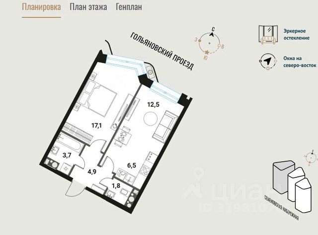 • ✓ В базе Циан 1 квартир-студий в новостройке на проезде Проектируемый № 789 в Москве