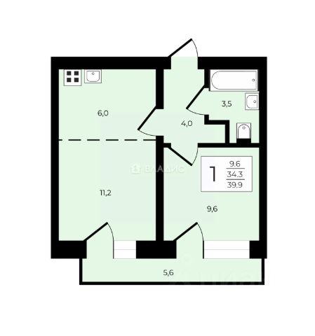 Вас ждет просторная столовая (11,20 кв.м), где соберется вся семья, уютная спальня (9,60 кв.м), функциональная кухня-ниша (6,00 кв.м) и прихожая (4,00 кв.м). Санузел (3,50 кв.м) продуман до мелочей. Но главное украшение — это балкон (5,60 кв.м), расширяющий границы вашего личного пространства.