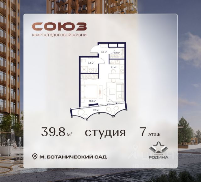 Рассрочка 0% Продаётся квартира-студия площадью 30.1 м² на 9 этаже в Жилом Комплексе "Союз". Квартал здоровой жизни премиум-класса с рекордным количеством олимпийских видов спорта: - Ледовая арена для хоккея и фигурного катания, - Футбольные поля для тренировок, - Спортивный зал для фехтования, - Бассейн на 6 дорожек, - Центр единоборств, - 4 крытых площадки для настольного тенниса, - 7 теннисных кортов (крытых и открытых), - 4 крытых площадки для сквоша, - Легкоатлетический стадион, - Площадки для баскетбола и волейбола. Уникальные форматы квартир с мастер-спальнями, приватными террасами, балконами, а также пентхаусы с открыточными видами на город. Все квартиры продаются с отделкой Shell&Core и панорамным остеклением. Расположение Пешком: - 2 мин. до парка "Сад Будущего"; - 6 мин. до ст. м. "Ботанический сад"; - 6 мин. до ст. МЦК "Ботанический сад"; - 6 мин. до парка "Леоновская роща"; На автомобиле: - 2 мин. до СВХ (МСД); - 5 мин. до Проспекта Мира; - 10 мин. до ТТК; - 15 мин. до Садового кольца; - 25 мин. до аэропорта "Шереметьево". Благоустройство - собственная спортивная инфраструктура 7 Га; - зона для пикников; - игровые и спортивные площадки для детей всех возрастов; - розарий, а также сосновые, каштановые и дубовые аллеи; - площадки под открытым небом для занятий спортом и йоги; - игровые комнаты для детей; - лаунж-зона для резидентов; - просторная переговорная для деловых встреч; - премиальный ресторан "Шабада" Сосо Павлиашвили с водными арт-объектами на прогулочной аллее, садом ароматных трав и сценой под открытым небом; - кафе, химчистки, аптеки и супермаркеты рядом с домом. Окружение - 8 парков: Сад Будущего, Леоновская роща, Хуамин, Главный ботанический сад РАН, Шереметьевская дубрава, Останкино, парк спорта "Яуза", пойма реки Яуза и музей-усадьба "Останкино"; - 3 ВУЗа: ВГИК, РГСУ, МГПУ; - 12 школ, в том числе: школа 1499 им. И.А. Докукина (топ 100), Brookes Moscow, IThub школа; - 18 детских садов, в том числе билингвальный ALERTUM KIDS; - один из крупнейших океанариумов Европы "Москвариум"; - один из крупнейших в Европе торгово-развлекательных центров "Европолис". Купить квартиру-студию в новостройке станция Ботанический сад (МЦК).