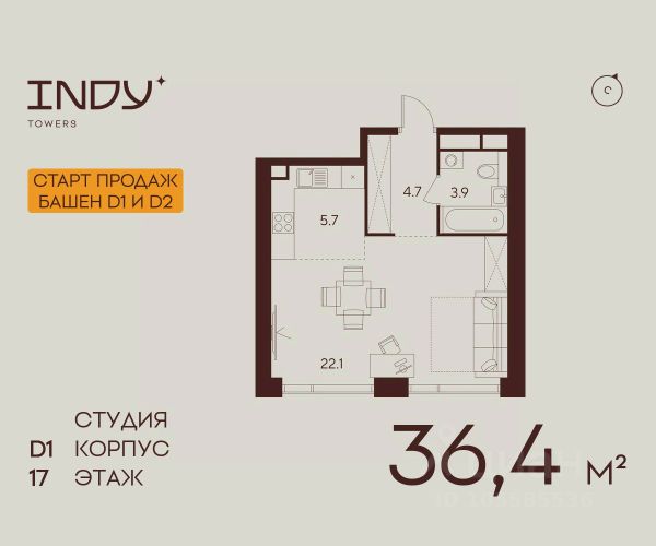 Продажа от застройщика. Продается просторная студия на 6 этаже жилого комплекса Indy Towers. Срок сдачи: 3 кв. 2029 г. Отделка: Квартиры продаются с отделкой WhiteBox. - Вам не придется заниматься черновыми работами. - Возможность реализовать любой дизайн-проект. Расположение: Комплекс расположен в Хорошевском районе Москвы, на улице Куусенина, в окружении почти 150 гектаров парков для прогулок и активного отдыха. Помимо этого, рядом с комплексом есть: - Детская международная академия тенниса - Ледовый спортивный комплекс ЦСКА - Футбольный стадион "ВЭБ-Арена" - Крупнейший в Европе торовый центр "Авиапарк" - Богатый выбор государственных и частных школ - 8 парков, окружающих комплекс Транспортная доступность: - 3 минут до метро Зорге - 2 минуты пешком до парка Березовая роща - 10 минут на машине до ТТК - 8 минут на машине до ТРЦ Авиапарк Внутренняя инфраструктура Indy Towers: - Кафе и продуктовые магазины - Тайский SPA - Фитнес зал - Комьюнити-зона - Детский клуб Аквилон KIDS - Детский сад Преимущества: - Технология энергоэффективности Termo-S, снижающая теплопотерю домов и позволяющую экономить на электроснабжении - Soundstop - технология дополнительной шумоизоляции на 39 дБ в квартирах с WhiteBox и чистовой отделкой - Система умного дома inHome 3.0 позволит контролировать коммунальные расходы, оплачивать счета и пользоваться услугами, не выходя из умного дома