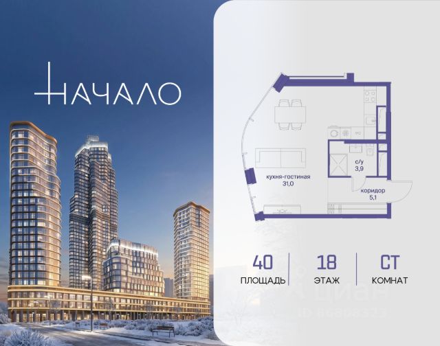 В престижном районе Пресня, на перекрестке делового и исторического центров Москвы, продается студия площадью 40.00 кв. м без отделки. Квартира находится на 18 этаже 24-этажного дома, в новом элитном жилом комплексе "Начало" от девелопера "Донстрой". Реализация проекта запланирована на 1 квартал 2030 года. Начало - футуристический дом на Пресне в нескольких минутах от Сити и Садового кольца. Проект по-настоящему космического масштаба, где есть все, чтобы раскрыть себя и свои возможности. Расположение Пресня - один из самых престижных районов Москвы. Жить здесь - значит стать частью истории столицы, быть в эпицентре деловой активности города и ощущать, как сама Вселенная вращается вокруг вас. - 5 минут пешком до Красногвардейских прудов; - 15 минут пешком до ст. метро "Улица 1905 года"; - 6 минут на автомобиле до Садового кольца и небоскрёбов "Москва-Сити"; - 12 минут на автомобиле до Кремля. Архитектура как путешествие Как росток пробивает скалу, как растет кристалл, как ракета устремляется ввысь - так формируется архитектурный образ этого дома. Точно выверенный баланс между футуристичными формами и функциональным содержанием дома выводит жизнь в нем на новую орбиту. Стеклянные фасады отражают небо и город, превращая здание в зеркало для окружающего ландшафта. Двор между небом и землёй Просторная территория двора с тремя тематическими зонами отдыха: "Млечный путь" - для детских игр и развлечений; "Космический сад" - для тихого отдыха и релакса; "Метеоритный сад" - для любителей спорта. Открытый променад - сквозной маршрут на крыше стилобата с зонами отдыха, занятий спортом, детских игр и совместной работы. Все площадки плавно связаны между собой прогулочной дорожкой. Теплая кольцевая галерея и мосты над пространством двора - все корпуса "стыкуются", точно модули космической станции. Главный центр притяжения В составе проекта возводится собственный комьюнити-центр, где создана идеальная атмосфера для любых начинаний: - Детский клуб для будущих покорителей Вселенной; - Коворкинги для решения задач планетарного и космического масштабов; - Переговорные для судьбоносных и просто важных встреч; - Лаунжи с атмосферой дзена и релакса; - Библиотека для спокойного чтения; - Кинотеатр для классики и блокбастеров. Территория комфорта и приватности Всё нужное рядом: - Современный образовательный центр со школой и детским садом - для ваших детей; - Фитнес-центр с бассейном - для релакса и борьбы со стрессом; - Ресторанная улица: кафе, рестораны, летние террасы - для деловых обедов и семейных ужинов; - Пекарня и минимаркет в доме - для ежедневных покупок; - Сквер у дома - для неспешных прогулок и спокойного отдыха; - Никаких такси на улице. Машина заберет вас прямо в подземном паркинге вашего корпуса. Продается квартира-студия в новостройке на улице Сергея Макеева в Москве.