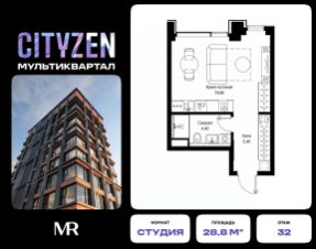 Продается студия от застройщика в жилом мультиквартале CITYZEN на 8-м этаже в корпусе #2 урбан-блока PARUS. Общая площадь лота составляет 29.90 м² В лобби корпуса #2 урбан-блока PARUS представлены: 1. Small-лобби с зоной отдыха 2. Почта 3. Колясочная 4. Лапомойка 5. Лифтовой холл 6. Санузел 7. Помещение уборочного инвентаря CITYZEN — это большой город в миниатюре. Инфраструктура мультиквартала организована по принципу шаговой доступности от подъезда до любой нужной точки: супермаркета, кофейни, салона красоты, фитнес-центра и др. В домах представлены лобби с атмосферой премиального резорта, дизайн которых вдохновлен французскими интерьерами 1960-х годов. Концепция благоустройства территории мультиквартала предусматривает большое количество вечнозеленых растений, что создает ощущение максимальной близости к природе. Жителей квартала ждут места для отдыха, игр, занятий спортом и прогулок с домашними питомцами. В приватном дворе с собственным садом предусмотрена зеленая комьюнити-гостиная для дружеского отдыха и общения, одна из стен которой подходит для кинопроекций, а также зеленый рабочий кабинет в саду (бизнес-гардена), оборудованный wi-fi станцией и usb-разъёмами для зарядки устройств. Маленьких жителей ждут авторские игровые площадки для разных возрастных групп (от 0 до 12 лет). Начало строительства - 1 квартал 2024 года. Окончание строительства - 3 квартал 2027 года.Компания MR предлагает своим клиентам специальные условия приобретения квартир в рамках программ ипотечного кредитования от банков-партнеров. Продам квартиру-студию в новостройке на улице Вишневая в Москве.