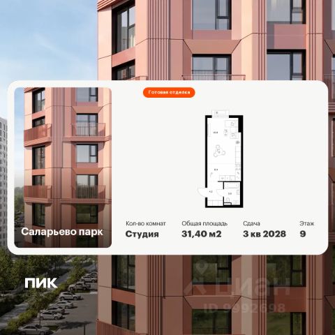 Продаётся квартира-студия площадью 21,4 кв.м на 16 этаже 18 этажного дома (Корпус 74.1, Секция 1) проекта ПИК Саларьево парк. Светлый просторный подъезд на уровне земли, функциональная планировка, большие окна, c отделкой. Жилой район "Саларьево парк" расположен в Новой Москве, в четырёх километрах от МКАД по Киевскому шоссе. Две станции метро: "Саларьево" и "Филатов луг", — находятся в пешей доступности от проекта. Дойти до них можно за 510 минут. В квартале уже создана качественная среда, где есть абсолютно всё для полноценной жизни, работы и отдыха. Благодаря удобному расположению проекта всё важное будет рядом: детские сады, школы, кафе и рестораны, шопинг в торговых центрах, фитнес и даже аэропорт. Все корпуса в квартале гармонично сочетаются, образуя единую городскую среду. Между собой их объединяет невысокая этажность и натуральная цветовая гамма. Здесь приятно гулять и проводить время на улице всей семьёй. В "Саларьево парке" создана уникальная образовательная среда, включающая в себя шесть школ, рассчитанных на 6 250 учеников. Две из них уже открыты, их посещает 2 300 детей. Также на территории "Саларьево парка" находится 12 детских садов, один из которых с бассейном. Сейчас уже открыты 7 садов. В "Саларьево парке" открыта уникальная игровая площадка — PlayHub "Оригами". Здесь есть ручей, горка-труба и рельефные холмы. Взрослые смогут отдохнуть в уютном кафе, пока дети играют. Также на территории проекта есть SportHub — большая спортивная зона, разделённая по интересам и возрастам. Здесь можно заниматься разными видами спорта: футболом, баскетболом, волейболом и стритболом. Зимой центральную часть площадки превращают в каток. Во дворах-парках жилого квартала есть места для отдыха, детские и спортивные площадки. На первых этажах домов расположены магазины, кафе и полезные сервисы. Также вблизи проекта есть несколько масштабных торговых центров. До ТЦ "Саларис" пять минут пешком, до "Рио", Metro Cash & Carry и "Леруа Мерлен" — пять минут на автомобиле. Артикул 1006231 (Застройщик ООО "Специализированный Застройщик "Тирон") Квартира-студия в Новой Москве.