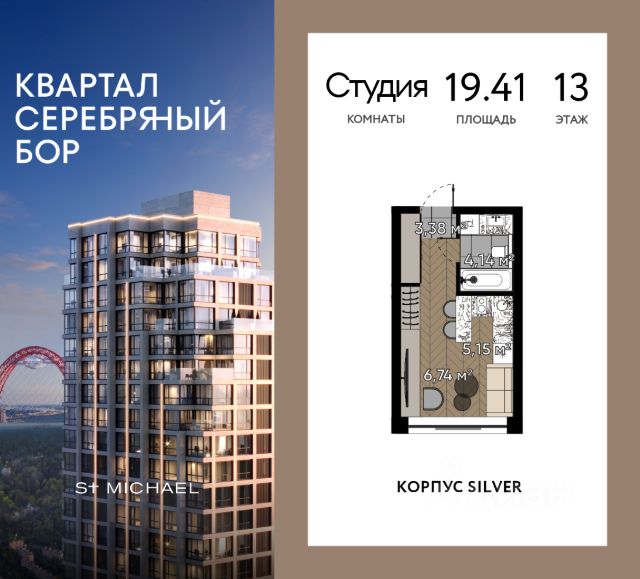 Продается студия площадью 21.3 кв.м. на 2-м этаже в жилом комплексе премиум-класса River Park Кутузовский в Башне Diamond Tower О жилом комплексе. Премиальный жилой комплекс River Park Кутузовский строится в одном из самых престижных районов столицы Дорогомилово, на берегу Москвы-реки. Яркий проект в стиле эко-футуризма станет самым масштабным и самым высотным ЖК в локации Кутузовского проспекта. В проекте будет впервые воплощена концепция Family Premium. Расположение и Транспортная доступность: - На берегу Москвы-реки, напротив Москва-Сити - 600 метров до Кутузовского проспекта - Удобный съезд с ТТК - Прямой выезд на МКАД по Северному дублеру Кутузовского проспекта. - В пешей доступности 3 станции метро: Фили, Парк Победы, Кутузовская, а также станция МЦД Фили. Архитектура от именитого бюро ADM отличается уникальной пластикой фасадов - башни словно парят в воздухе, играя гранями как драгоценные камни. Жилой комплекс состоит из 5-ти небоскребов с home park на закрытой территории и внешней торговой галереей с открытым доступом. В закрытом внутреннем дворе уникальная по насыщенности клубная инфраструктура - 5 Towers Club только для жителей: - Многофункциональная спортивная площадка (баскетбол, футбол, воллейбол, большой теннис) - Детский игровой клуб NEMO - Life Rooms с караоке, барной стойкой и meeting room - Music salon - Gedonist Club с бильярдной - Beauty station - Гольф-симулятор Впервые в Москве lounge зоны на крыше небоскребов, только для жителей: - Всесезонные беседки иглу - Джакузи - Барная стойка - Грили - Площадка для занятий йогой - Самые высоки качели на крыше в России - Видовые площадки Благоустройство комплекса занимает 3 гектара и разработано мировым экспертом по городским парковым ландшафтам - голландским бюро WEST8. Концепция проекта дать жителям отдохнуть от городского ритма, расслабиться среди природы и натуральных материалов. В home park будут высажены многолетние деревья по принципу no allergy. - Зеркальный пруд с арт-объектом - Две детские площадки - Work out с навесом - Цветущий сад - Party lounge - Видовая зона отдыха с очагом - Солярий На территории жилого комплекса планируется строительство крупного образовательного центра: детский сад на 200 мест и школа на 460 мест. Квартира-студия с отделкой от застройщика в Москве.