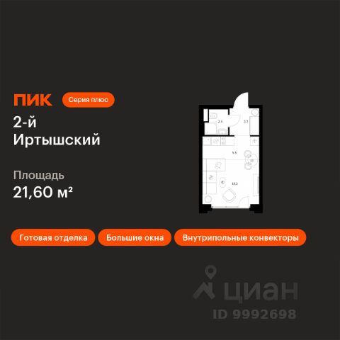 Просторная студия для молодой семьи. Общая площадь - 23.2м2, удобная планировка, кухня 5м2. Панорамные виды из окон на две стороны - на национальный парк "Лосиный остров" и благоустроенный внутренний двор. Условия покупки: - Скидка при полной оплате - 10% - Ипотека от 3,5% на весь срок или 0,11% на первый год - Рассрочка без процентов - Trade-in с проживанием на время строительства дома НАЗАРЕ - шесть домов бизнес-класса высотой 24-43 этажа. Проект расположен рядом с национальным парком "Лосиный остров" и парком "Сокольники". В продаже квартиры с мастер-спальнями, кухнями-гостиными, открытыми террасами, просторными кладовыми и ванными с окном. Форматы - от светлых студий 21,6 м2 до семейных 4-комнатных 125,5 м2. Часть лотов - с предчистовой отделкой White Box. Транспортная доступность: - Метро "Бульвар Рокоссовского" и МЦК - 2 мин. пешком - Северо-Восточная хорда - 3 мин. на автомобиле - Третье транспортное кольцо - 15 мин. на автомобиле - Садовое кольцо - 18 мин. на автомобиле Инфраструктура: В составе проекта появится собственный детский сад и торгово-развлекательный центр с акцентом на шопинг и досуг. На первых этажах домов откроются кафе, пекарни, магазины и службы сервиса. В районе Богородское находятся престижные школы, медцентры, магазины и спортивные клубы.