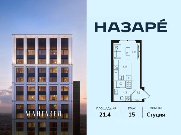 Предложения месяца от девелопера: - Скидка при полной оплате - 15% - Ипотека от 3,5% на весь срок или 0,11% на первый год - Рассрочка без процентов - Trade-in с проживанием на время строительства дома Просторная квартира-студия. Общая площадь - 21.6 м2 на 26 этаже, без отделки. Эргономичные планировки, мастер-спальни, угловые комнаты с окнами на две стороны света и террасы с завораживающими видами на панораму города и национальный парк "Лосиный остров". НАЗАРЕ' - шесть домов бизнес-класса высотой 24-43 этажа. Проект расположен в окружении трёх парков: "Лосиный остров", "Сокольники" и "Измайловский". Территория НАЗАРЕ' приватный двор-сад с авторским благоустройством. Здесь появятся прогулочные дорожки, зоны для тихого отдыха и медитации, спортивные и игровые площадки для детей разных возрастов, коворкинг на свежем воздухе. В продаже видовые квартиры с увеличенным количеством широкоформатных окон, мастер-спальнями, кухнями-гостиными, открытыми террасами, двумя гардеробными и просторными кладовыми. Форматы - от светлых студий 21,5 м2 до семейных 4-комнатных 125, 5 м2. Часть лотов - с предчистовой отделкой. Транспортная доступность: - Метро и МЦК "Бульвар Рокоссовского" - 2 мин. пешком - Северо-Восточная хорда - 3 мин. на автомобиле - Третье транспортное кольцо - 15 мин. на автомобиле - Садовое кольцо - 18 мин. на автомобиле - Трамвай до центра города - Удобные выезды на Открытое шоссе, Большую Черкизовскую улицу и СВХ Инфраструктура: • Район Богородское: детские сады, творческие центры, престижные школы, ведущие московские вузы, медицинские центры, магазины и спортивные клубы. • Планируется открытие собственного торгово-развлекательного центра с акцентом на шопинг и досуг в шаговой доступности. Здесь появятся различные ресторанные концепции, фитнес-клуб и детское игровое пространство. • На первых этажах домов откроются кафе, пекарни, магазины и службы сервиса. • Собственный детский сад на 75 мест • Все для жизни и отдыха резидентов: коворкинг, лаунж-зоны, общественная гостиная с мягкой мебелью, библиотеки и кафе, дополнят инфраструктуру - фитнес-зал для групповых и индивидуальных тренировок, игровое пространство для детей с выходом во двор и т.д. • Двухуровневый подземный паркинг с келлерами для хранения сезонных вещей, а также местами для велосипедов