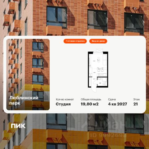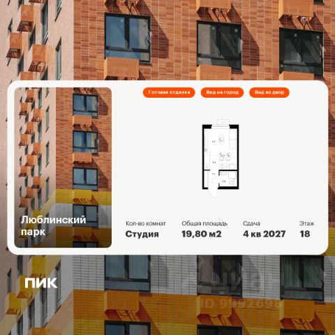 Продаётся квартира-студия площадью 19,8 кв.м на 8 этаже 25 этажного дома (Корпус 19, Секция 1) проекта ПИК Люблинский парк. Светлый просторный подъезд на уровне земли, функциональная планировка, большие окна, c отделкой. Жилой квартал "Люблинский парк" расположен на юго-востоке Москвы, в шаговой доступности от станции "Братиславская". На метро до центра ехать всего 30 минут. Также недалеко станция МЦД "Перерва", от которой можно уехать в Москву или в область. В проекте 54 жилых корпуса, три школы, семь детских садов, поликлиника. В районе есть все условия для комфортной жизни: торговые центры, школы, детские сады, поликлиники и спортивные центры. Рядом находятся усадьба Люблино, скверы и парки. Различные магазины, кафе и другие сервисы откроются на первых этажах, а на подземных будут паркинги с удобной навигацией. В зелёных дворах без автомобилей мы построим детские площадки и места для отдыха. А ещё "Люблинский парк" стал третьим проектом ПИК с большой игровой площадкой PlayHub, которая уже открылась между 1-м и 2-м блоками на безопасном расстоянии от дороги. Новое детское пространство "Остров" воплощает идею бесконечной игры. Ландшафт площадки — это ещё и игровой элемент, который помогает детям придумывать множество самых разнообразных игр. Здесь интересно детям разного возраста — от малышей до подростков. Жителям квартала Люблинский парк и их друзьям доступен проект ПИКСПОРТ — это бесплатные занятия с профессиональными тренерами. Тренировки по разным направлениям, например йога, фитнес, бег, воркаут, проходят как в группе на улице рядом с домом, так и онлайн. Артикул 605117 (Застройщик ООО СЗ "Люблино Девелопмент")