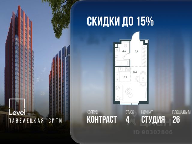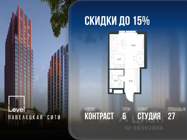 В Даниловском районе столицы (ЮАО) продаётся студия площадью 27.00 кв.м без отделки. Квартира расположена на 6 этаже 27-этажного корпуса 'Горизонт' в жилом комплексе бизнес-класса Павелецкая Сити. Высота потолков 3.00м. Престижная локация "Павелецкая Сити" - жилой комплекс бизнес-класса, расположенный в престижном Даниловском районе Москвы, на границе с ЦАО. Проект находится в историческом центре города в окружении парков, Москвы-реки и сформированной инфраструктуры. В пределах 20 минут пешком есть 3 станции метро, а в 5 минутах езды на авто - ТТК и Садовое кольцо. - 15 мин. пешком до метро "Павелецкая"; - 20 мин. пешком до станций "Тульская" и "Серпуховская"; - 8 мин. на авто до Кремля; - 10 мин. на авто до парка Горького и парка "Зарядье"; - 20 мин. на авто до башен "Москва-Сити". Авторская архитектура Архитектурная концепция разработана бюро СПИЧ по индивидуальному проекту. Облик корпусов I и II очередей отсылает к стилистике архитектуры классического Нью-Йорка и золотой эпохи Голливуда. Корпуса IV очереди вдохновлён эстетикой ар-деко в её современном переосмыслении. Благодаря линейному расположению корпусов из большинства квартир будут открываться потрясающие виды на исторический центр города и Москву-реку. Дизайнерские лобби Изысканные интерьеры лобби жилого комплекса отсылают к классическим фильмам золотой эпохи Голливуда. Классика в "Павелецкая Сити" - не имитация, а современное осмысление лучшего в этом стиле. В каждом вестибюле оборудованы стойки ресепшен, комфортные зоны ожидания, гостевые санузлы, мойки для лап животных, колясочные. В корпусах по 3-4 лифта, включая сервисный, с прямым доступом в паркинг. Площадь лобби - от 47,9 до 114,9 кв. м, высота потолков - до 5,46 м. Благоустройство и инфраструктура Для создания благоустройства было приглашено 2 ведущих бюро - ADM и GAFA. Разноуровневое пространство вмещает всё необходимое для качественного досуга: игровые площадки для детей всех возрастов, тропы здоровья для пеших прогулок, крытые аллеи с качелями, места для работы на свежем воздухе, многофункциональные спортивные площадки - воркаут-зоны, столы для пинг-понга, зоны командных игр. Общая площадь закрытого двора - 4,63 га. Комфорт - это когда рядом всё, что нужно для жизни. На первых этажах и в стилобатной части корпусов "Павелецкая Сити" размещены 85 коммерческих помещений, где откроются супермаркеты, кафе, пекарни, аптеки и другие службы сервиса. В составе проекта также предусмотрены собственный фитнес-клуб и развивающий центр Letovo Kids, а также школа на 720 мест и детский сад на 175 мест. Технологии и безопасность - Wi-Fi в лобби и на придомовой территории; - Автоматизированная система контроля и учета ресурсов; - Круглосуточное видеонаблюдение и охрана; - Круглосуточная связь с охраной через приложение, телефон или кол-центр; - Контроль доступа по биометрической системе Face-ID; - Усиленный сотовый сигнал в лифтах и паркинге; - Распознавание номеров автомобилей при въезде/выезде в/из паркинга.