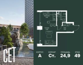 О квартире Продаётся студия общей площадью 25.12 кв. м. с отделкой на выбор: черновая, White Box. Квартира на 13 этаже корпуса 5 в жилом комплексе бизнес-класса "Среда на Кутузовском". До метро "Кунцевская" 10 минут пешком. Исторический зелёный район "Среда на Кутузовском" строится в Кунцево - историческом и экологически чистом районе Москвы. Здесь нет крупных производств, много лесных массивов и роза ветров, которая обеспечивает приток чистого воздуха. Район наполнен жизнью и уже развит: много детских садов и школ, поликлиники, магазины, кафе, спортивные объекты, парки. - 10 минут пешком до станции метро "Кунцевская". - 5-8 минут на машине до Кутузовского проспекта и Можайского шоссе и 10-15 минут до Рублёвского и МКАД. - 15 минут езды до Крылатских холмов, Суворовского парка и заказника "Долина реки Сетунь". О жилом комплексе "Среда на Кутузовском" - новый квартал с башнями от 12 до 44 этажей, окружённый лесными массивами и историческими усадьбами старой Москвы. Во внутреннем дворе есть водоём, многоуровневые зоны с детскими и спортивными площадками, коворкинг на свежем воздухе и локации для уединённого отдыха. Особенности - Архитектура с многослойными фасадами. - Квартиры с террасами и мастер-спальнями. - Окна в пол на всех этажах. - Общественные лаунж-гостиные. - Собственный ландшафтный парк во дворе. - Зоны барбекю и площадки для отдыха у воды. - Умный подземный паркинг. - Стрит-ритейл на первых этажах.