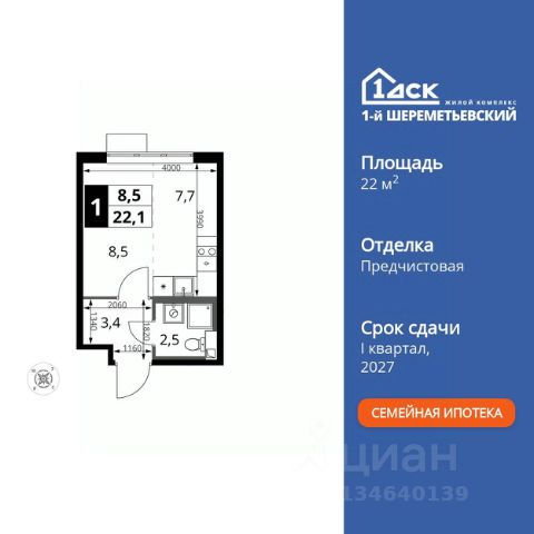 Прямая продажа от застройщика! Жилой Комплекс класса Комфорт Плюс. Продаётся квартира-студия номер 806 общей площадью 27.9 кв.м. на 4-м этаже 16 этажного здания. Предчистовая отделка. Цена с учётом скидки. Особенности квартиры: - Организуем показ в удобное для вас время! - Линейная планировка - максимальная функциональность и удобство. - Увеличенная ширина окна/окон - больше света и визуального простора. - Гибкая планировка - создайте пространство по своему вкусу. - Можно оборудовать рабочее место - комфорт для работы и учёбы. - Линейная кухня - функциональность и практичность в одном решении. - Гардеробная - удобство для хранения и организации вещей. Квартира с предчистовой отделкой. Вам не придется заниматься черновыми и трудоёмкими работы, а чистовую отделку и дизайн - сделайте на свой вкус. Информация о комплексе: ЖК "1-й Шереметьевский" в центре Подрезково: 6 минут пешком до ж/д станции и МЦД-3. Яркие лобби, колясочная, лапомойка и гостевой санузел на первом этаже. Два лифта, кладовые и подземный паркинг в корпусах 3-5. Разнообразие планировок с большими кухнями-гостиными, двумя санузлами от 40 кв.м и остеклёнными лоджиями. Умный дом с защитой от протечек и мобильным управлением электроприборами. Транспортная доступность: - Общественный транспорт: До ближайших станций метро Планерной и Войковской около 40-50 минут на автобусе. 6 минут до ЖД станции Подрезково (МЦД-3) - Личный автотранспорт: Удобный выезд на Ленинградское шоссе позволяет быстро добираться до МКАДа и в центр Москвы, до платной трассы М11 и в аэропорт Шереметьево. - 3 минуты до Ленинградского ш. - 10 минут до платной трассы М11 - 15 минут до МКАД - 20 минут до ст. м Войковская - 25 минут до ст. м Планерная Внутренняя инфраструктура: "1-й Шереметьевский": жизнь в шаговой доступности. На первых этажах - магазины со свежими продуктами, кофейни, химчистки и салоны красоты для повседневных нужд без поездок. Собственная школа на 1100 учеников с бассейном и детский сад на 400 малышей с музыкальным залом. Дворы без машин, безопасные игровые площадки и зоны тихого отдыха. Закольцованный веломаршрут с навигацией и парковками. Всё для комфортной жизни без лишних перемещений. Квартира с предчистовой отделкой - ваш дизайн без черновых работ