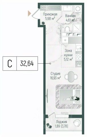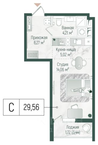Продаётся студия 472, площадью 24,33 м², на 2 этаже в ЖК "Ильинойс" корпус 3. Стоимость — от 6171935 руб. Квартира без отделки, планировка односторонняя, окна во двор.