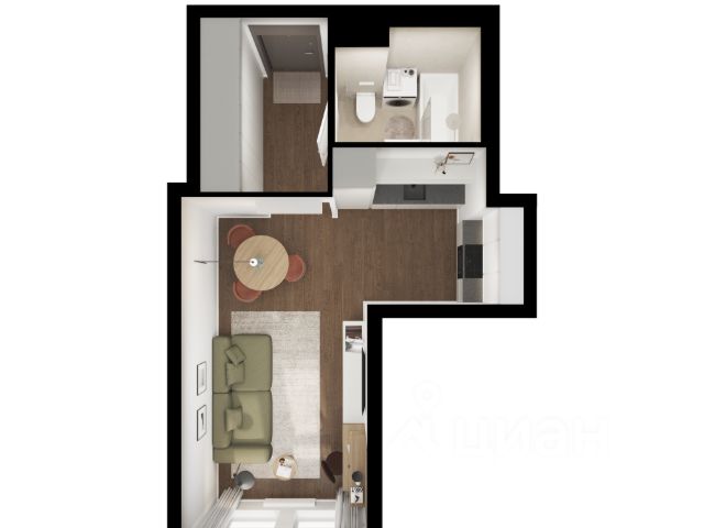 • Евроформат. Используйте пространство как вам удобно: большая кухня-гостиная или изолированная спальня и кухня,