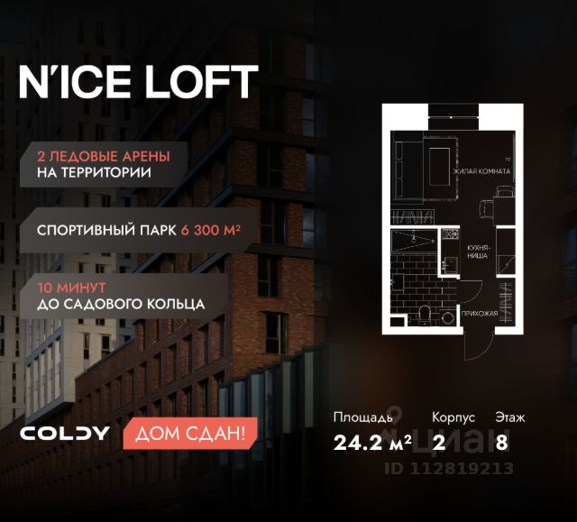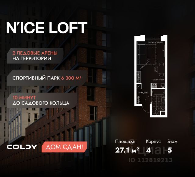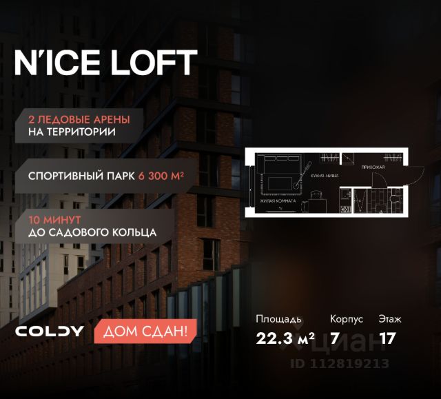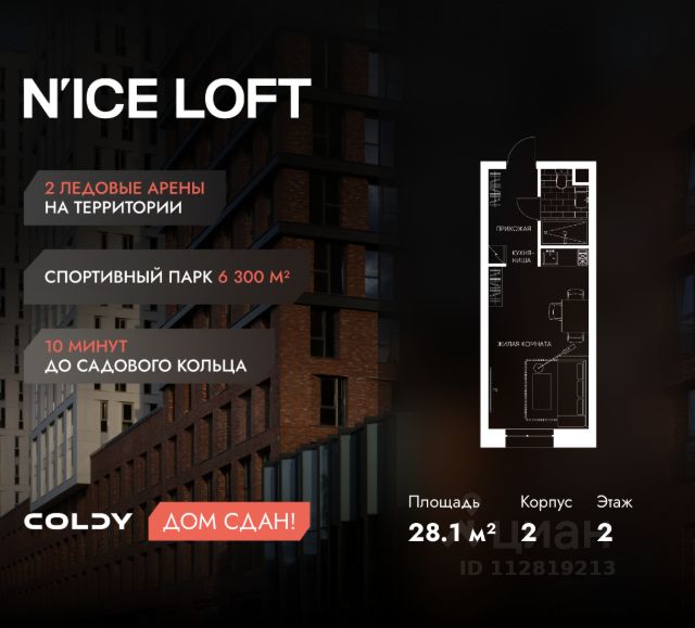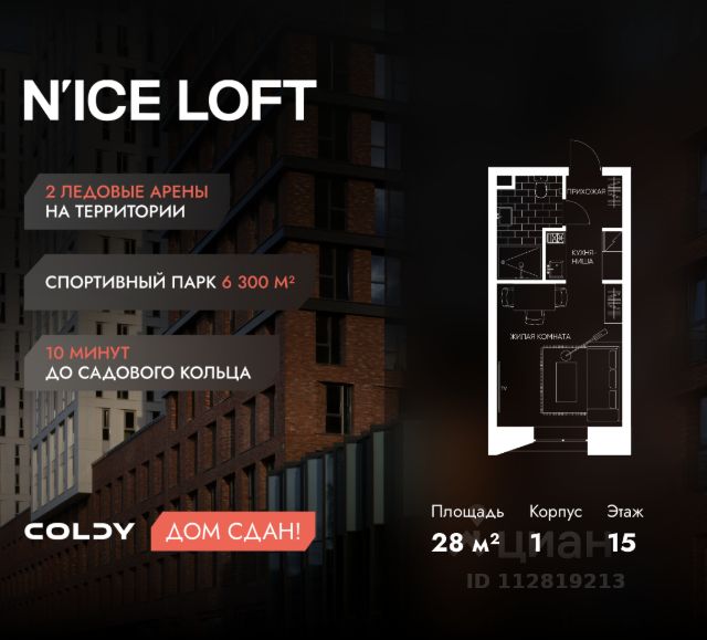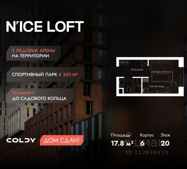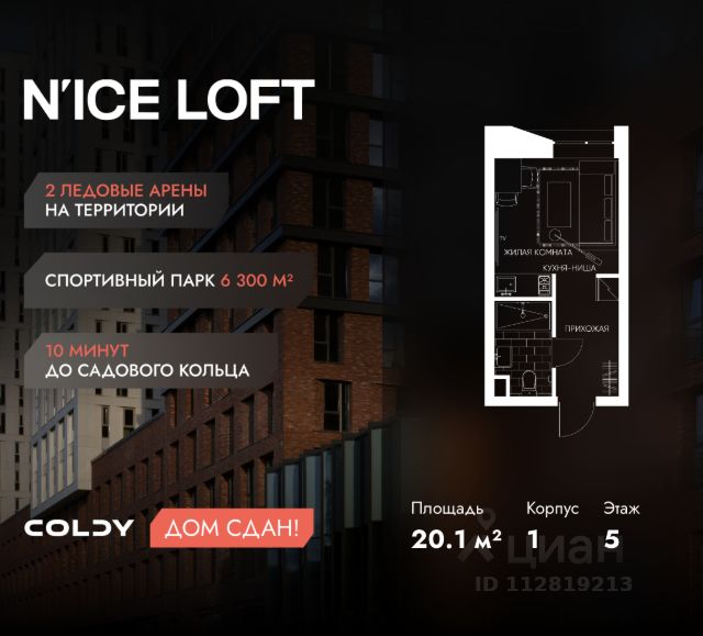 NICE LOFT — готовый жилой квартал с собственным спортивным кластером в 10 минутах от Садового кольца Комплекс апартаментов бизнес-класса NICE LOFT, девелопером которого выступила компания Coldy, представляет собой знаковое жилое пространство, на территории которого органично объединены высококачественная инфраструктура для комфортной жизни и полноценный спортивный кластер. NICE LOFT — новая спортивная доминанта Москвы, где для жителей и их гостей предусмотрено более 20 000 м², созданных специально для тренировок, игр, восстановления и оздоровления. Автором выразительной городской эстетики выступило архитектурное бюро APEX. Строгие силуэты фасадов эффектно возвышаются над благоустроенным окружением, а световые блики элегантно подчеркивают структурное фасадное остекление. Сердце проекта — физкультурно-оздоровительный комплекс с двумя ледовыми аренами формата НХЛ — профессиональными площадками. Помимо спортивных арен на территории NICE LOFT предусмотрено пять многофункциональных залов, где каждый, сможет реализовать свой спортивный потенциал. Для тех, кто предпочитает тренировки и прогулки на свежем воздухе, создан спортивный парк общей площадью 6 300 м² с воркаут-зонами, игровыми площадками и уединенными пространствами для отдыха. Также внутри квартала проложена километровая беговая дорожка, которая доступна к использованию в любое время года. Особое внимание архитекторы уделили входной группе — просторное авторское лобби с потолками до 9 метров с использованием природных элементов. Резиденты и их гости смогут насладиться садом, не покидая пределы дома. Территория апарт-комплекса NICE LOFT соответствует современным стандартам безопасности: инновационная система видеонаблюдения, охраняемый подземный паркинг и круглосуточный консьерж-сервис. Преимущества NICE LOFT: Готовый жилой квартал с собственным спортивным кластером в 10 минутах от Садового кольца Современная архитектура с выразительными контрастными фасадами Спортивная инфраструктура 20 000 м²: 2 ледовые арены формата НХЛ, 5 залов, беговая дорожка 1 км Спортивный парк 6 300 м² с зонами для разных видов активностей Более 10 видов спорта в одном кластере Апартаменты с панорамными окнами и потолками до 5 метров Видовые лоты с террасами и патио Авторское лобби с потолками до 9 метров Консьерж-сервис 24/7 Охраняемый подземный паркинг Купить квартиру-студию с отделкой от застройщика рядом с метро Волгоградский проспект.
