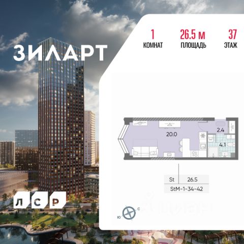 Продается квартира студия площадью 19.80 кв.м на 8 этаже 43 этажного монолитно-кирпичного дома в ЖК "ЗИЛАРТ" от Группа ЛСР. ЗИЛАРТ СПАРК — новый дом бизнес-класса в жилом квартале "ЗИЛАРТ" высотой 150 метров. Он сочетает в себе современную архитектуру, передовые технологии и восхитительные виды на ландшафтный парк "Тюфелева Роща" и бульвар Братьев Весниных. Близкое расположение к музейно-выставочному центру "Коллекция" и концертному залу создает вдохновляющую атмосферу места, где переплетаются жизнь и творчество. ЗИЛАРТ СПАРК расположен в престижном Даниловском районе. В пешей доступности находятся несколько станций метро: "Тульская", "Автозаводская", "Технопарк" и недавно открытая "ЗИЛ" Троицкой линии, с которой можно пересесть на одноименную станцию МЦК, а позже и на станцию "ЗИЛ" Бирюлевской линии (открытие запланировано на 2028 год). В пешей доступности есть вся необходимая инфраструктура: супермаркеты, салоны красоты, уютные кафе и рестораны, спортивные студии, места для досуга, отдыха и развлечений. На благоустроенной набережной Марка Шагала располагается действующий причал "ЗИЛ". Жилой комплекс даст возможность прогуляться по живописной набережной, просторному парку и бульвару. Любители здорового образа жизни и спортсмены оценят современные площадки для спортивных игр и фитнес-центр с бассейном. Молодые родители будут спокойны за настоящее и будущее детей благодаря современной образовательной среде. В "ЗИЛАРТе" расположена одна из самых больших школ России на 2,5 тысячи учеников.