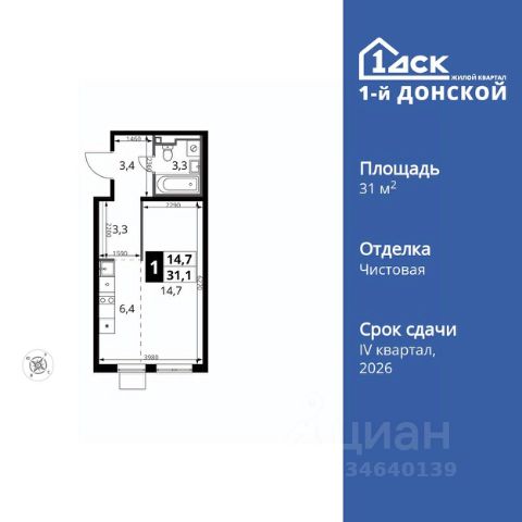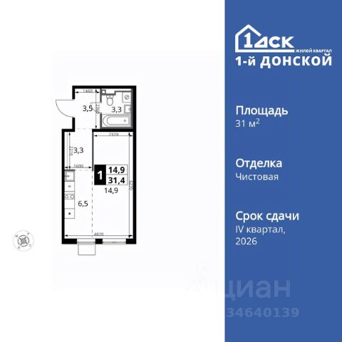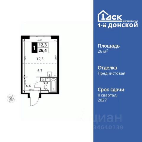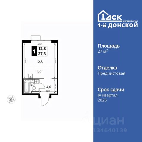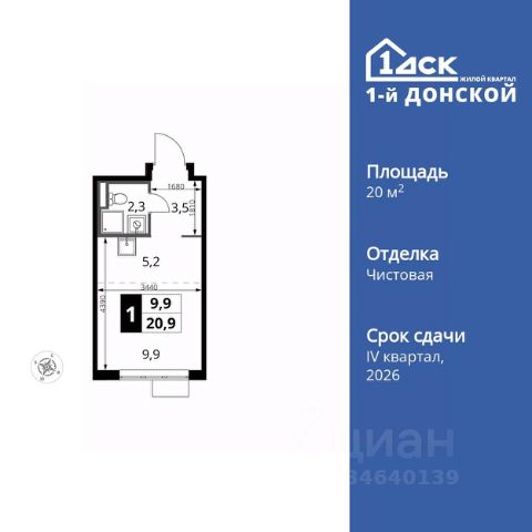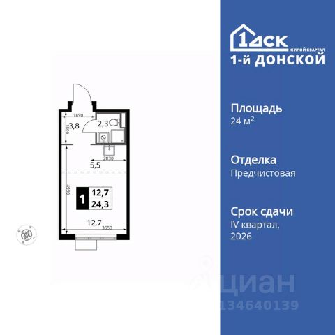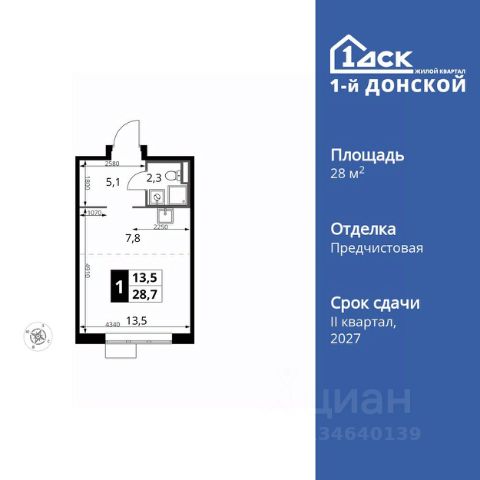Продаётся квартира-студия номер 520 общей площадью 28.4 кв.м. на 5-м этаже 24 этажного здания. Отделка Whitebox.