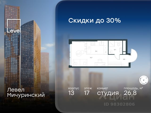 О квартире Продаётся студия общей площадью 24.4 кв.м. без отделки. Квартира расположена на 8 этаже корпуса 5.7 в жилом комплексе бизнес-класса "Среда на Лобачевского" в пешей доступности от метро "Аминьевская". О жилом комплексе "Среда на Лобачевского" полностью соответствует критериям современного жилого пространства. Взяв за основу рациональный подход, мы гармонично соединили дизайн, актуальные тренды и функциональность. Продуманный современный экстерьер и функциональные планировки внутри, приватные пространства и разнообразные досуговые зоны для каждого члена семьи — все это "Среда на Лобачевского". Инфраструктура Район отлично развит и наполнен жизнью, здесь уже есть вся необходимая инфраструктура — детские сады, школы, медучреждения, торговые центры, благоустроены парки для прогулок и отдыха, удобен и легкодоступен городской транспорт. Рядом расположены учебные корпуса крупных университетов — МГУ, МГИМО и РАНХиГС. Школы и детские сады в районе занимают высокие позиции в городских рейтингах, поэтому вам не придется беспокоиться о качестве образования детей. Как и об отдыхе: поблизости расположены живописные пруды, реки и парки. Это Парк Олимпийской деревни, Парк имени 50-летия Октября, Мещерский парк и Очаковские пруды. Теперь поставить галочки в еженедельном чек-листе "спорт-прогулки-встречи с друзьями" можно, не покидая любимый район. Особенности Особое внимание в проекте уделяется созданию функциональных пространств не только внутри дома, но и за его пределами. В ландшафтном парке "Среды на Лобачевского" расположены крытые зоны для спокойного времяпровождения, места для активного отдыха и спорта, коворкинг, соседский комьюнити-центр, водные объекты. —Ландшафтный парк во дворе. —Водный сад с зонами отдыха. —Зоны коворкинга. —Дизайнерские гранд-лобби. —Бесключевой доступ. —Подземный паркинг.