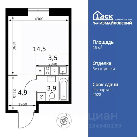 Прямая продажа от застройщика! Жилой Комплекс Комфорт класса. Продаётся квартира-студия номер 177 общей площадью 19.9 кв.м. на 3-м этаже 25 этажного здания. Без отделки. Цена с учётом скидки. Особенности квартиры: - Линейная планировка - максимальная функциональность и удобство. - Можно оборудовать рабочее место - комфорт для работы и учёбы. - Ниша под шкаф - компактное и удобное место для вещей. Информация о комплексе: Современный архитектурный проект "1-й Измайловский" - идеальное место для проживания, расположенное в восточной части Москвы в окружении 14 000 гектаров леса. Комплекс пронизан атмосферой здорового образа жизни и благополучия. Сиреневый сад и близлежащие лесопарки - это места, где можно насладиться лыжными прогулками зимой и тонизирующими пробежками летом. Расположенный между Щелковским шоссе и Амурской улицей, "1-й Измайловский" осмысляет себя не столько через близость к городским точкам притяжения, сколько через соседство с зелеными пространствами и спортивными объектами. Он отгорожен от шоссе застройкой первой линии и собственными садами здоровья. В его окнах - изумрудное море парка "Лосиный остров" и густые кроны окрестных дворов. В его графике - занятия спортом и прогулки в Измайлове. Транспортная доступность: Не более 2,5 км до станций метро "Щёлковская" и "Черкизовская" и МЦК "Локомотив". Щёлковское шоссе соединяет квартал с Северо-восточной хордой и МКАД, Центральным автовокзалом и Восточным железнодорожным вокзалом. Две автобусные остановки в паре минут ходьбы и 11 маршрутов общественного транспорта. На автомобиле 3 минуты до СВХ 12 минут до ТТК 15 минут до Садового кольца Внутренняя инфраструктура: Комплекс находится в исторически сложившемся районе Москвы с хорошим качеством и плотностью инфраструктуры. Торговые центры и сетевые магазины -6 детских садов, включая собственный детский сад на 125 мест -3 школы, включая собственную школу -Поликлиники и медицинские центры -Парки и зоны отдыха Расположение архитектурного проекта создает все условия для тех, кто стремится к здоровому образу жизни и для тех, кто уже сделал выбор в его пользу. В ближайшем окружении расположены несколько стадионов и множество спортивных объектов для занятий спортом на любой вкус: от всеми любимого футбола, баскетбола и до конного спорта. В окружении проекта более 30 километров организованных беговых и велодорожек. Продается квартира-студия с отделкой от застройщика станция Локомотив (МЦК).