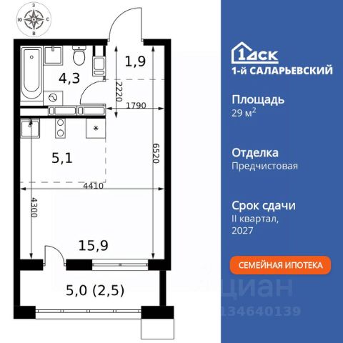 Прямая продажа от застройщика! Жилой Комплекс класса Комфорт+. Продаётся квартира-студия номер 91 общей площадью 27.1 кв.м. на 10-м этаже 24 этажного здания. Чистовая отделка. Цена с учётом скидки. Особенности квартиры: - Организуем показ в удобное для вас время! - Линейная планировка - максимальная функциональность и удобство. - Увеличенное количество окон - дополнительное освещение и свежий воздух. - Гибкая планировка - создайте пространство по своему вкусу. - Линейная кухня - функциональность и практичность в одном решении. - Наличие острова на кухне - удобство и стиль для вашей кухни. - Ниша под шкаф - компактное и удобное место для вещей. Квартира с чистовой отделкой. Раскройте свою индивидуальность в создании своего уникального проекта, а трудоемкий ремонт мы возьмем на себя! Вы идете в ногу со временем и предпочитаете современные, универсальные дизайнерские решения? Или вы любитель строгой лаконичной классики? Тогда наши интерьеры придутся вам по душе! Выбирайте то, что ближе лично Вам и реализуйте свои задумки вместе с нами! Информация о комплексе: Микрорайон спроектирован по концепции "без машин": безопасные пешеходные зоны, дворы без автомобилей. Для гостей и перевозки грузов - сквозные подъезды с внешней стороны и паркинги на 7 этажах. Безбарьерная среда для колясок и маломобильных групп, повсеместное видеонаблюдение. Удобство и порядок без ущерба для комфорта жителей. Транспортная доступность: "1-й Саларьевский" в Новой Москве: 2 км от МКАД, 5 минут пешком до метро "Саларьево". Удобный выезд на Киевское шоссе для автомобилистов. Рядом ТЦ "Саларис" с покупками и развлечениями для всей семьи. Личный автотранспорт: До Киевского шоссе - 0,2 км До МКАД - 2,4 км До Калужского шоссе - 5 км До Ленинского проспекта - 3,2 км Общественный транспорт: До станции метро "Саларьево" - 7 мин пешком До остановок наземного транспорта - 5-10 мин пешком До Ленинского проспекта на автобусе - 10 мин Внутренняя инфраструктура: Во дворе царит беззаботная атмосфера: магазины первой необходимости, уютные кафе и кофе-пойнты. На бульваре - уличные выставки, шахматные столы и световые качели. Свой детский сад на 225 мест и муниципальная школа на 450 учеников плавно сопровождают взросление детей. Рядом - развитая инфраструктура: фитнес-центры, парки, ТРЦ для шопинга, салоны красоты и рестораны. Всё в шаговой доступности или в паре минут на велосипеде. Идеальная среда для жизни - каждый элемент продуман для комфорта и радости. Квартира с чистовой отделкой: ваш стиль без ремонта. Выбирайте современный дизайн или классику - мы воплотим ваши идеи. Готовые интерьеры для уникального дома.