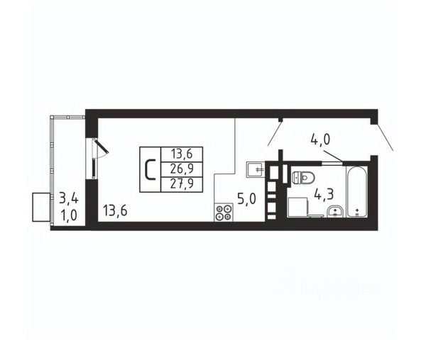Дополнительный бонус студии - наличие лоджии. Панорамные окна с видом на солнечную сторону, на восток.