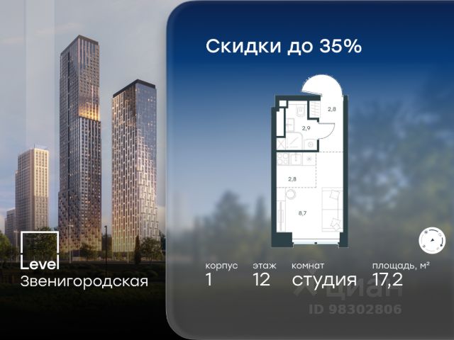 10 минут от Москва-Сити В продаже квартира площадью 22.77 м² с предчистовой отделкой на 19 этаже 55 этажного дома. Квартира расположена в корпусе Anna. JOIS это премиальный жилой комплекс от девелопера MR в районе Хорошёво-Мнёвники. Он включает несколько эффектных небоскрёбов высотой 47-56 этажей, эксклюзивные форматы квартир с панорамным остеклением, подземный двухуровневый паркинг на 239 м/м, собственную приватную инфраструктуру, закрытый ландшафтный парк 2,3 Га с функциональным зонированием и охраняемой территорией. Над проектом работали лучшие команды международных агентств с многолетним опытом: Genpro, S&P, iLight International и другие. Расположение Пешком: - 5 мин. ст. МЦК "Хорошёво"; - 15 мин. ст. м. "Народное ополчение"; - 10 мин. ст. метро "Звенигородская" с 2027 года; - 20 мин. причал "Карамышевский". На автомобиле: - 3 мин. до Звенигородского шоссе; - 5 мин. до ТТК: - 8 мин. до Серебряного бора и Строгинского затона - 10 мин. до ММДЦ "Москва-Сити"; - 40 мин. до аэропорта "Шереметьево"; Благоустройство - собственный ландшафтный парк 2,3 Га; - парк скульптур от Cosmoscow; - консьерж-сервис 24/7; - сервисный лифт и вход; - игровые и спортивные площадки; - коворкинг с библиотекой; - лаунж-зона с камином; - игровые комнаты для детей и клуб для подростков с оборудованием для видеоигр; - спортивная студия для индивидуальных тренировок; - гостиная с мини-кухней; - зоны для выгула собак; - подогрев пешеходных дорожек в зимний период; - автополив зелёных насаждений; - премиальные рестораны, кафе, химчистки, аптеки и супермаркеты. Окружение - 4 парка: Покровское-Стрешнево, Филёвский парк, Серебряный бор и Берёзовая роща; - 15 общеобразовательных заведений, в том числе две школы из самых лучших в Москве: государственная школа "Интеграл" и частная "Хорошкола"; - спортивное сооружение "ВЭБ Арена", домашний стадион ФК ЦСКА; - крупнейший в Европе торгово-развлекательный центр "Авиапарк".