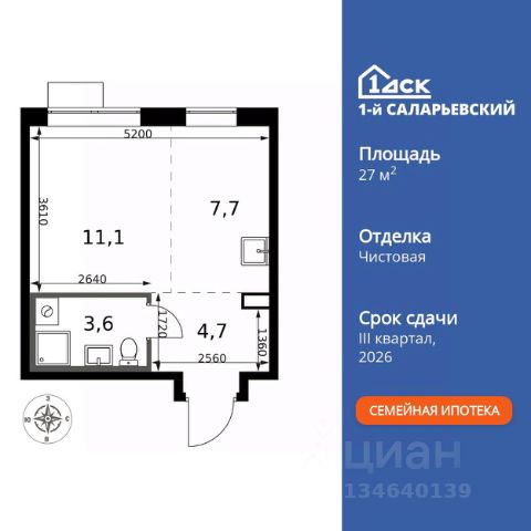 Прямая продажа от застройщика! Жилой Комплекс класса Комфорт+. Продаётся квартира-студия номер 91 общей площадью 27.1 кв.м. на 10-м этаже 24 этажного здания. Чистовая отделка. Цена с учётом скидки. Особенности квартиры: - Организуем показ в удобное для вас время! - Линейная планировка - максимальная функциональность и удобство. - Увеличенное количество окон - дополнительное освещение и свежий воздух. - Гибкая планировка - создайте пространство по своему вкусу. - Линейная кухня - функциональность и практичность в одном решении. - Наличие острова на кухне - удобство и стиль для вашей кухни. - Ниша под шкаф - компактное и удобное место для вещей. Квартира с чистовой отделкой. Раскройте свою индивидуальность в создании своего уникального проекта, а трудоемкий ремонт мы возьмем на себя! Вы идете в ногу со временем и предпочитаете современные, универсальные дизайнерские решения? Или вы любитель строгой лаконичной классики? Тогда наши интерьеры придутся вам по душе! Выбирайте то, что ближе лично Вам и реализуйте свои задумки вместе с нами! Информация о комплексе: Микрорайон спроектирован по концепции "без машин": безопасные пешеходные зоны, дворы без автомобилей. Для гостей и перевозки грузов - сквозные подъезды с внешней стороны и паркинги на 7 этажах. Безбарьерная среда для колясок и маломобильных групп, повсеместное видеонаблюдение. Удобство и порядок без ущерба для комфорта жителей. Транспортная доступность: "1-й Саларьевский" в Новой Москве: 2 км от МКАД, 5 минут пешком до метро "Саларьево". Удобный выезд на Киевское шоссе для автомобилистов. Рядом ТЦ "Саларис" с покупками и развлечениями для всей семьи. Личный автотранспорт: До Киевского шоссе - 0,2 км До МКАД - 2,4 км До Калужского шоссе - 5 км До Ленинского проспекта - 3,2 км Общественный транспорт: До станции метро "Саларьево" - 7 мин пешком До остановок наземного транспорта - 5-10 мин пешком До Ленинского проспекта на автобусе - 10 мин Внутренняя инфраструктура: Во дворе царит беззаботная атмосфера: магазины первой необходимости, уютные кафе и кофе-пойнты. На бульваре - уличные выставки, шахматные столы и световые качели. Свой детский сад на 225 мест и муниципальная школа на 450 учеников плавно сопровождают взросление детей. Рядом - развитая инфраструктура: фитнес-центры, парки, ТРЦ для шопинга, салоны красоты и рестораны. Всё в шаговой доступности или в паре минут на велосипеде. Идеальная среда для жизни - каждый элемент продуман для комфорта и радости. Квартира с чистовой отделкой: ваш стиль без ремонта. Выбирайте современный дизайн или классику - мы воплотим ваши идеи. Готовые интерьеры для уникального дома.