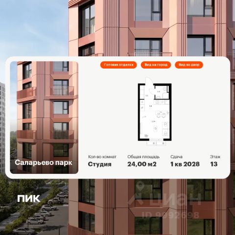 Продаётся квартира-студия площадью 24,9 кв.м на 8 этаже 18 этажного дома (Корпус 74.1, Секция 1) проекта ПИК Саларьево парк. Светлый просторный подъезд на уровне земли, функциональная планировка, большие окна, c отделкой. Жилой район "Саларьево парк" расположен в Новой Москве, в четырёх километрах от МКАД по Киевскому шоссе. Две станции метро: "Саларьево" и "Филатов луг", — находятся в пешей доступности от проекта. Дойти до них можно за 510 минут. В квартале уже создана качественная среда, где есть абсолютно всё для полноценной жизни, работы и отдыха. Благодаря удобному расположению проекта всё важное будет рядом: детские сады, школы, кафе и рестораны, шопинг в торговых центрах, фитнес и даже аэропорт. Все корпуса в квартале гармонично сочетаются, образуя единую городскую среду. Между собой их объединяет невысокая этажность и натуральная цветовая гамма. Здесь приятно гулять и проводить время на улице всей семьёй. В "Саларьево парке" создана уникальная образовательная среда, включающая в себя шесть школ, рассчитанных на 6 250 учеников. Две из них уже открыты, их посещает 2 300 детей. Также на территории "Саларьево парка" находится 12 детских садов, один из которых с бассейном. Сейчас уже открыты 7 садов. В "Саларьево парке" открыта уникальная игровая площадка — PlayHub "Оригами". Здесь есть ручей, горка-труба и рельефные холмы. Взрослые смогут отдохнуть в уютном кафе, пока дети играют. Также на территории проекта есть SportHub — большая спортивная зона, разделённая по интересам и возрастам. Здесь можно заниматься разными видами спорта: футболом, баскетболом, волейболом и стритболом. Зимой центральную часть площадки превращают в каток. Во дворах-парках жилого квартала есть места для отдыха, детские и спортивные площадки. На первых этажах домов расположены магазины, кафе и полезные сервисы. Также вблизи проекта есть несколько масштабных торговых центров. До ТЦ "Саларис" пять минут пешком, до "Рио", Metro Cash & Carry и "Леруа Мерлен" — пять минут на автомобиле. Артикул 1006118 (Застройщик ООО "Специализированный Застройщик "Тирон") Купить квартиру-студию в новостройке с отделкой в поселении Московский в Москве.