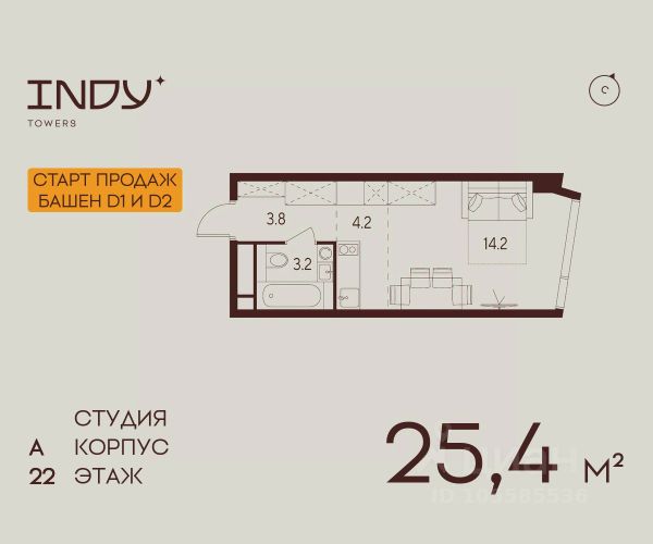 Продажа от застройщика. Продается просторная студия на 24 этаже жилого комплекса Indy Towers. Вид из окон: во двор. Срок сдачи: 4 кв. 2026 г. Отделка: Квартиры продаются с отделкой WhiteBox. - Вам не придется заниматься черновыми работами. - Возможность реализовать любой дизайн-проект. Расположение: Комплекс расположен в Хорошевском районе Москвы, на улице Куусенина, в окружении почти 150 гектаров парков для прогулок и активного отдыха. Помимо этого, рядом с комплексом есть: - Детская международная академия тенниса - Ледовый спортивный комплекс ЦСКА - Футбольный стадион "ВЭБ-Арена" - Крупнейший в Европе торовый центр "Авиапарк" - Богатый выбор государственных и частных школ - 8 парков, окружающих комплекс Транспортная доступность: - 3 минут до метро Зорге - 2 минуты пешком до парка Березовая роща - 10 минут на машине до ТТК - 8 минут на машине до ТРЦ Авиапарк Внутренняя инфраструктура Indy Towers: - Кафе и продуктовые магазины - Тайский SPA - Фитнес зал - Комьюнити-зона - Детский клуб Аквилон KIDS - Детский сад Преимущества: - Технология энергоэффективности Termo-S, снижающая теплопотерю домов и позволяющую экономить на электроснабжении - Soundstop - технология дополнительной шумоизоляции на 39 дБ в квартирах с WhiteBox и чистовой отделкой - Система умного дома inHome 3.0 позволит контролировать коммунальные расходы, оплачивать счета и пользоваться услугами, не выходя из умного дома