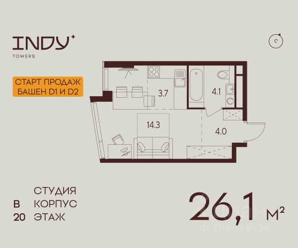 Продажа от застройщика. Продается просторная студия на 8 этаже жилого комплекса Indy Towers. Вид из окон: на улицу. Срок сдачи: 4 кв. 2026 г. Отделка: Квартиры продаются с отделкой WhiteBox. - Вам не придется заниматься черновыми работами. - Возможность реализовать любой дизайн-проект. Расположение: Комплекс расположен в Хорошевском районе Москвы, на улице Куусенина, в окружении почти 150 гектаров парков для прогулок и активного отдыха. Помимо этого, рядом с комплексом есть: - Детская международная академия тенниса - Ледовый спортивный комплекс ЦСКА - Футбольный стадион "ВЭБ-Арена" - Крупнейший в Европе торовый центр "Авиапарк" - Богатый выбор государственных и частных школ - 8 парков, окружающих комплекс Транспортная доступность: - 3 минут до метро Зорге - 2 минуты пешком до парка Березовая роща - 10 минут на машине до ТТК - 8 минут на машине до ТРЦ Авиапарк Внутренняя инфраструктура Indy Towers: - Кафе и продуктовые магазины - Тайский SPA - Фитнес зал - Комьюнити-зона - Детский клуб Аквилон KIDS - Детский сад Преимущества: - Технология энергоэффективности Termo-S, снижающая теплопотерю домов и позволяющую экономить на электроснабжении - Soundstop - технология дополнительной шумоизоляции на 39 дБ в квартирах с WhiteBox и чистовой отделкой - Система умного дома inHome 3.0 позволит контролировать коммунальные расходы, оплачивать счета и пользоваться услугами, не выходя из умного дома