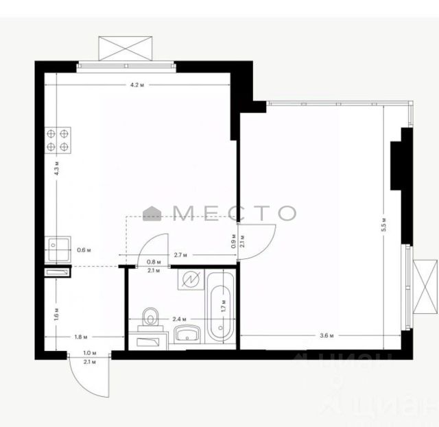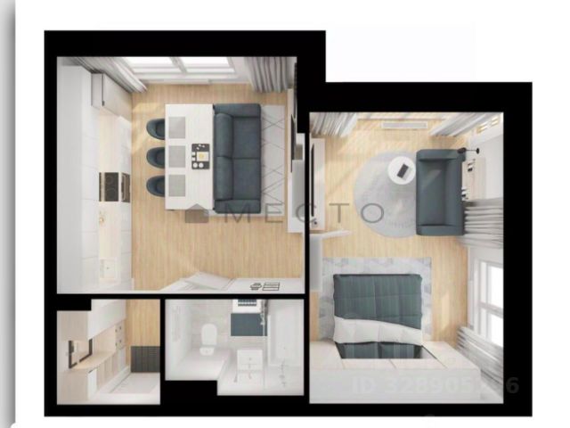 компактная планировка, позволяющая эргономично расположить всю необходимую мебель: на 27кв.м удачно разместились зона отдыха, кухонная зона,прихожая, санузел с душевой кабиной;
