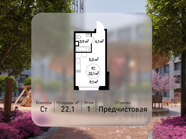 Продается квартира-студия с отделкой в городе-парке "Переделкино Ближнее". Общая площадь квартиры - 22,1 кв. м, этаж 1 из 17. Срок сдачи - 3 квартал 2028 года. Тип дома - монолитный. ТОЛЬКО ДО 30 АПРЕЛЯ выгодные условия на приобретение квартиры в ипотеку или рассрочку. Звоните - и мы подберем оптимальное предложение под ваш запрос! Корпус расположен в 13 фазе строительства и состоит из 6 секций с переменной этажностью 12-17 этажей. Около 13 фазы запланировано строительство многоуровневого паркинга на 300 м/мест. 13 фаза имеет уникальное расположение и находится непосредственно на берегу Федосьинского пруда, который является сердцем города-парка "Переделкино Ближнее". Город-парк "Переделкино Ближнее" расположен в 8 км от МКАД по Боровскому шоссе. ТРАНСПОРТНАЯ ДОСТУПНОСТЬ: - 15 минут пешком до станции МЦД-4 "Мичуринец" - 25 минут пешком до станции метро "Рассказовка" Солнцевской линии - 30 минут до центра Москвы - 2026 г. - открытие трассы Солнцево-Бутово-Варшавское шоссе РАЗВИТАЯ СОЦИАЛЬНАЯ ИНФРАСТРУКТУРА: - 7 детских садов, 3 школы - банки, продуктовые магазины, аптеки, фитнес центры, салоны красоты и пр БЛАГОУСТРОЙСТВО: - дворы без машин - игровые зоны и развивающие детские площадки - зоны для созерцательного и медитативного отдыха - зоны для занятий спортом ОСОБЕННОСТИ АРХИТЕКТУРЫ: - высокие потолки от 3,03 м - безбарьерные входные группы - колясочные в каждой входной группе - кладовые помещения расположены на -1 этаже каждой секции - в каждой секции 2 лифта: 1 пассажирский, 1 грузовой - на фасаде предусмотрены корзины для установки кондиционеров АВТОРСКИЙ ДИЗАЙН: Входные группы выполнены по авторскому дизайну, благодаря панорамному остеклению наполнены естественным светом. В каждой входной группе будет располагаться комфортабельная зона ожидания с возможностью зарядить электронные устройства, почтовые ящики, колясочная, акцентные пуфы и столик. Квартира-студия в новостройке с отделкой в Москве.