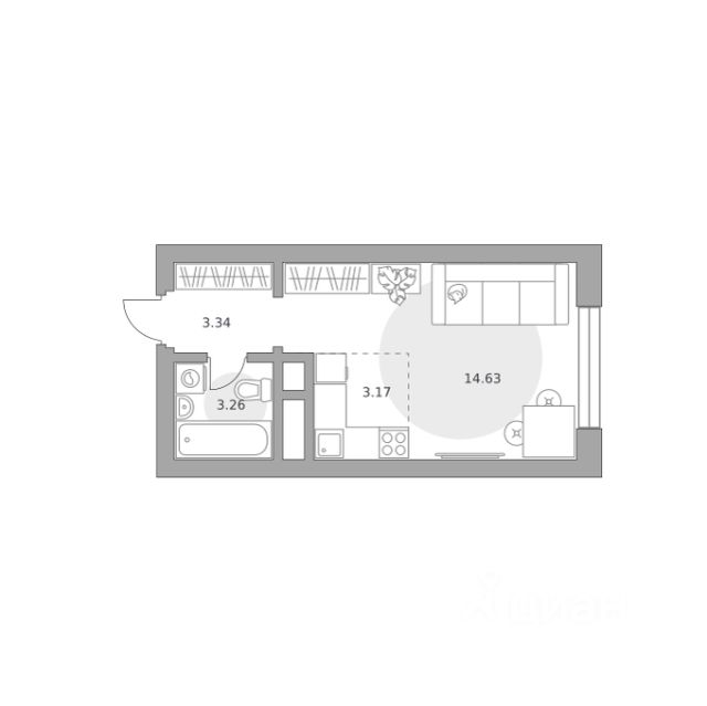Продаётся студия 1789, площадью 24,40 м², на 19 этаже в ЖК "Ильинойс" корпус 3. Стоимость — от 7595377 руб. Квартира с отделкой, планировка односторонняя, окна во двор.