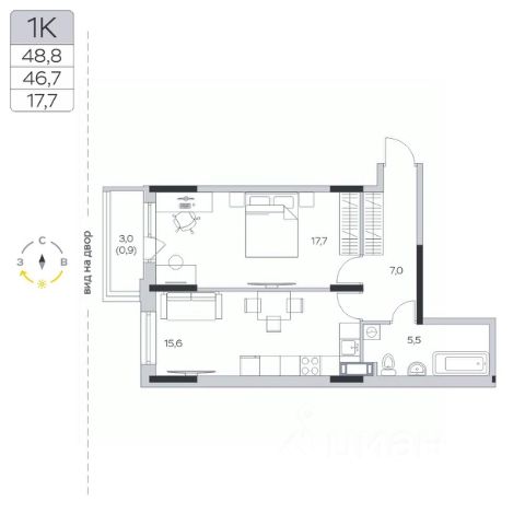 Продаётся студия 343, площадью 29,15 м², на 12 этаже в ЖК "Императорские Мытищи" корпус 1.1. Стоимость — от 7611353 руб. Квартира с отделкой, планировка односторонняя, окна во двор.