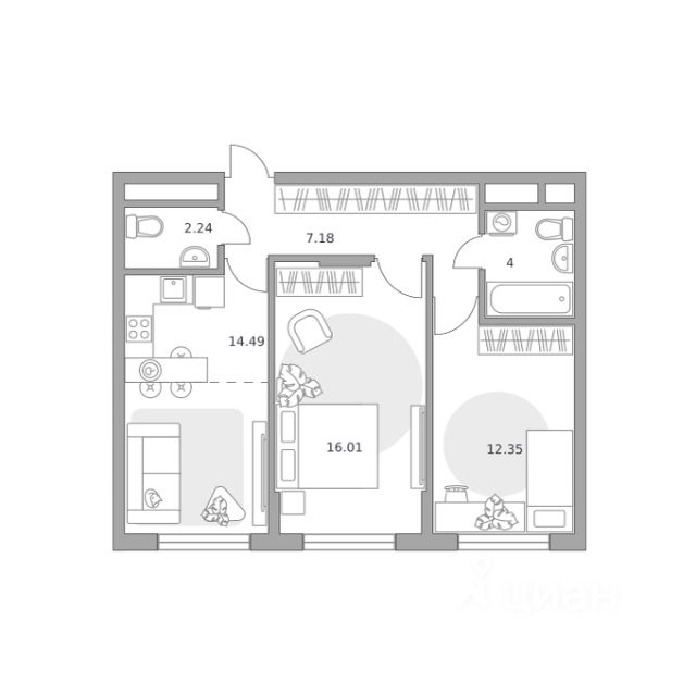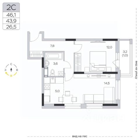 Продаётся 1-комнатная квартира в строящемся доме (Корпус 11.1), срок сдачи: III-кв. 2026, общей площадью 42.7 кв.м., на 7 этаже. Новый жилой комплекс "Белый мыс" от застройщика "ГК Инград" расположен по адресу: Россия, Московская область, городской округ Мытищи, деревня Челобитьево