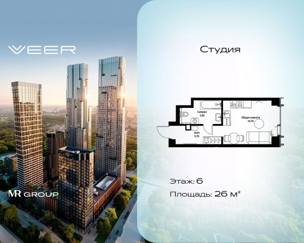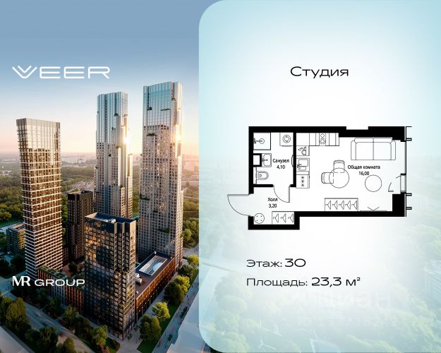 Прямая продажа от застройщика. Продаётся студия общей площадью 23.30 м² с предчистовой отделкой в ЖК VEER на 2-м этаже 59 этажного дома. Жилой комплекс бизнес-класса VEER от компании MR — это футуристичный мультиквартал, расположенный в престижной локации на западе Москвы. Благодаря переменной высоте башен — двух 22-этажных, 46-этажной и двух 59-этажных — возникает динамичность в силуэте комплекса, а его яркий образ вносит разноплановость в архитектурный пейзаж района. Расположение и транспортная доступность: • VEER удобно расположен в непосредственной близости от Кутузовского проспекта, обеспечивая быстрый доступ к центральным районам Москвы • Комплекс находится непосредственно напротив самого большого природного заказника в Москве - парка "Долина реки Сетунь", а за семь минут можно доехать до памятника садово-паркового искусства, Троекуровского леса. • Всего в 15 минутах - центр города, самая престижная бизнес-школа управления России "Сколково", дом творчества "Переделкино". • 18 минут пешком до м. "Давыдково" • Открытие новых станций метро в шаговой доступности в будущем Инфраструктура: Разнообразить свой день резиденты VEER смогут также проводя больше времени на свежем воздухе. Двор разделен на 4 зоны разных эмоций и действий, которые пересечены и соединены веерными прогулочными маршрутами: • Спортивная площадка устроена в глубине "Кленовой рощи" • В "Чайном домике" будет создан навес с утеплением для отдыха в любую погоду • Площадки для детей воплотятся в "Волшебный лес" с цветами, зеркалами и световым дизайном • "Центральная площадь" устроена у водного оазиса живописного пруда. Компания MR предлагает своим клиентам специальные условия приобретения квартир в рамках программ ипотечного кредитования от банков-партнеров.