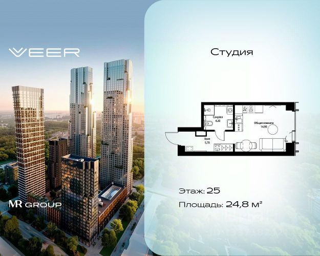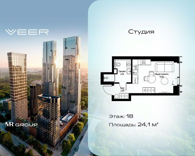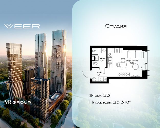 Прямая продажа от застройщика. Продаётся студия общей площадью 23.30 м² с предчистовой отделкой в ЖК VEER на 2-м этаже 59 этажного дома. Жилой комплекс бизнес-класса VEER от компании MR — это футуристичный мультиквартал, расположенный в престижной локации на западе Москвы. Благодаря переменной высоте башен — двух 22-этажных, 46-этажной и двух 59-этажных — возникает динамичность в силуэте комплекса, а его яркий образ вносит разноплановость в архитектурный пейзаж района. Расположение и транспортная доступность: • VEER удобно расположен в непосредственной близости от Кутузовского проспекта, обеспечивая быстрый доступ к центральным районам Москвы • Комплекс находится непосредственно напротив самого большого природного заказника в Москве - парка "Долина реки Сетунь", а за семь минут можно доехать до памятника садово-паркового искусства, Троекуровского леса. • Всего в 15 минутах - центр города, самая престижная бизнес-школа управления России "Сколково", дом творчества "Переделкино". • 18 минут пешком до м. "Давыдково" • Открытие новых станций метро в шаговой доступности в будущем Инфраструктура: Разнообразить свой день резиденты VEER смогут также проводя больше времени на свежем воздухе. Двор разделен на 4 зоны разных эмоций и действий, которые пересечены и соединены веерными прогулочными маршрутами: • Спортивная площадка устроена в глубине "Кленовой рощи" • В "Чайном домике" будет создан навес с утеплением для отдыха в любую погоду • Площадки для детей воплотятся в "Волшебный лес" с цветами, зеркалами и световым дизайном • "Центральная площадь" устроена у водного оазиса живописного пруда. Компания MR предлагает своим клиентам специальные условия приобретения квартир в рамках программ ипотечного кредитования от банков-партнеров.