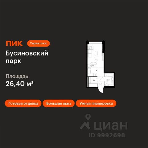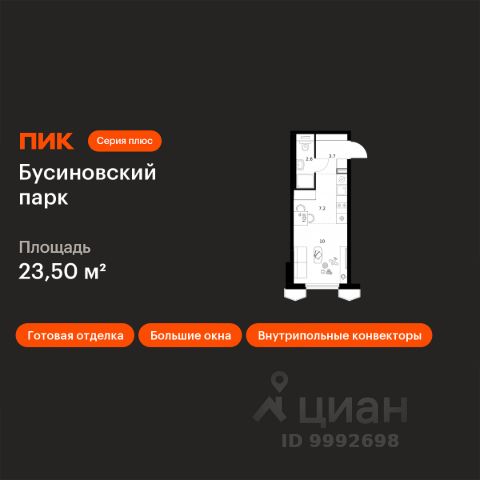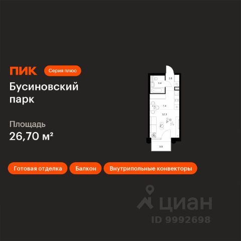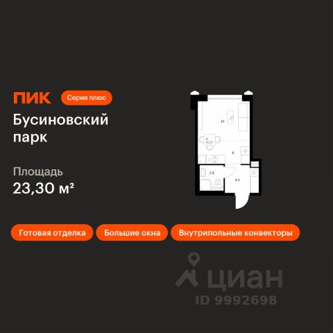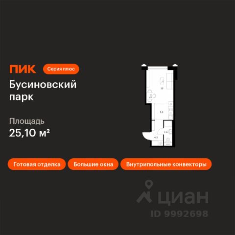 Продаётся квартира-студия площадью 24,8 кв.м на 2 этаже 24 этажного дома (Корпус 22.2, Секция 2) проекта ПИК Бусиновский парк. Светлый просторный подъезд на уровне земли, функциональная планировка, большие окна, c отделкой. Бусиновский парк" расположен на севере Москвы — в районе Западное Дегунино, в 20 минутах пешком от метро "Ховрино". Яркий и современный образ жилого квартала создают башни-доминанты — у каждой из них свой уникальный фасад, разработанный российскими архитектурными бюро. Проектом предусмотрены входы на уровне земли, без ступеней, порогов и пандусов — так удобнее и безопаснее. У подъездов будет два выхода: на улицу и во двор-парк. В наших дворах мы установим столы и лавочки со встроенными зарядными устройствами. Не нужно будет возвращаться домой, чтобы зарядить смартфон или ноутбук: можно весь день работать на свежем воздухе В проекте появится масштабное пространство площадью 4Га - МультиХаб "Атлас". Для юных жителей появится большая игровая площадка с горными хребтами для лазания, ручьём золотоискателей, лесным фортом и песочной зоной для малышей. Дети смогут придумывать здесь бесчисленное количество игр независимо от своего возраста. Взрослые смогут отдохнуть в дождевом саду — это удивительное место, где после дождя появляются маленькие живописные озерца. Для спорта — уличные тренажёры, площадки для командных игр, столы для пинг-понга и шахмат. Владельцы собак оценят место для прогулок с питомцем. А специально для подростков мы спроектировали уникальное пространство для отдыха — памп-трек для катания, большой навес, амфитеатр и сетки для отдыха, где они смогут собираться вместе в любую погоду. В лобби "Бусиновского парка" будет удобная зона ожидания, где можно встретить друзей, курьера или дождаться такси, а также гостевая туалетная комната со столиком для пеленания. На территории проекта предусмотрены двухуровневый подземный и наземный паркинги. В паркингах установлены надёжные системы вентиляции, пожаротушения и круглосуточного видеонаблюдения. А ещё для наших паркингов мы разработали систему навигации, которая помогает быстро найти автомобиль. На подземных этажах "Бусиновского парка" предусмотрены вместительные кладовые. В них жители проекта смогут хранить сезонные и габаритные вещи, которые занимают много места в квартире. В корпусе 1.4 появится общественная терраса на 30-м этаже. Доступ сюда есть только у жителей, поэтому вы не встретите в этом пространстве посторонних людей. Здесь можно заниматься спортом, отдохнуть за чтением книги или создать собственный сад. А ещё отсюда открываются красивые виды на город. В "Бусиновском парке" предусмотрены квартиры с панорамным остеклением, различными балконами, эркерами, угловыми окнами и большим количеством окон — до пяти в одной комнате. В таких квартирах широкий угол обзора: можно пить кофе, наблюдая за жизнью на улице и наслаждаясь ощущением простора. Ещё больше комфорта придаст мягкий солнечный свет, который равномерно осветит всю квартиру. Артикул 953