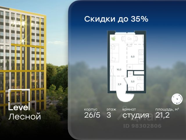 В районе, утопающем в густой зелени лесов, многочисленных парков и скверов, продаётся студия площадью 26.90 кв.м с отделкой white box. Квартира расположена на 2 этаже в жилом комплексе комфорт-класса Level Лесной (компания Level Group/Левел групп).