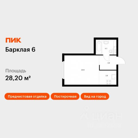 Продаётся квартира-студия площадью 26,2 кв.м на 12 этаже 32 этажного дома (Корпус 8, Секция 3) проекта ПИК Барклая 6. Светлый просторный подъезд на уровне земли, функциональная планировка, большие окна, предчистовая отделка. Жилой квартал "Барклая 6" расположен в районе Филёвский Парк, рядом с набережной Москвы-реки и парком "Фили". В 10 минутах пешком находятся станции метро "Парк Победы" и "Фили", до "Багратионовской" можно дойти за 8 минут. На машине через новый путепровод доехать до Кутузовского проспекта получится за 3 минуты, до ТТК — за 10 минут. В уютном проекте "Барклая 6" восемь жилых домов с переменной этажностью — 12, 24 и 32 этажа, подземный паркинг, детский сад на 125 малышей и начальная школа на 225 детей. Внутри квартала появится приватный парк для жителей, где можно гулять, играть на детских и спортивных площадках. На территории парка будет Вайфай, в лавочках предусмотрены разъёмы для зарядок. На первых этажах откроются полезные сервисы, магазины и кафе, куда можно будет спуститься за кофе в домашних тапочках. Уникальную архитектуру домов подчеркнёт подсветка фасадов. В светлых лобби, оформленных по индивидуальному дизайн-проекту, предусмотрены удобные зоны ожидания, гостевая туалетная комната и лапомойки для собак, чтобы питомцы попадали в квартиру уже чистыми. Район вокруг "Барклая 6" хорошо развит. Здесь много школ и детских садов, работают поликлиники, спортивные школы и дворец водных видов спорта "Фили". Рядом — магазины и торговые центры. В планах города Москвы обновить район рядом с "Барклая 6". Уже расширена улица Барклая и запущен путепровод для прямого и удобного выезда на Кутузовский проспект, а по его дублеру, Проспекту Багратиона, сможете быстро доехать до "Москва-Сити" или МКАД. Изменится "Горбушкин двор": здесь реконструируют старые здания, построят новые дома, офисы, школы и детские сады. Со временем окружение жилого квартала станет более современным и аккуратным. Артикул 814038 (Застройщик АО "СПЕЦИАЛИЗИРОВАННЫЙ ЗАСТРОЙЩИК"ФИЛИТ")