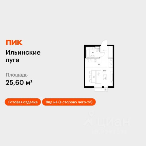 Продаётся квартира-студия площадью 25,6 кв.м на 9 этаже 9 этажного дома (Корпус 3.3, Секция 3) проекта ПИК Ильинские луга. Светлый просторный подъезд на уровне земли, функциональная планировка, большие окна, c отделкой. Жилой район "Ильинские луга" находится в 10 километрах от МКАД по Новорижскому шоссе, в 20 минутах на автомобиле от станций метро "Волоколамская", "Тушинская" и "Строгино". В будущем ближе к проекту, в 9 минутах пути на машине, откроется станция "Ильинская" Рублёво-Архангельской линии, которая будет соединять Арбатско-Покровскую линию и Большую кольцевую линию. Сейчас в квартале начались продажи в корпусах 3.2, 3.3, 3.4, 3.5 и 3.6. "Ильинские луга" — масштабный проект, в который входит девять детских садов, четыре школы и поликлиника. Он строится в престижном и экологичном районе среди лесов и памятников природы. За 5 минут от жилого квартала можно доехать до Рублёво-Успенского шоссе, а за 30 минут — до центра Москвы. До крупного торгового центра "РИГАМОЛЛ" всего 5 минут на автомобиле, а до ТЦ "Твой дом" и гипермаркета "Глобус" — 10 минут. В "Ильинских лугах" строятся только девятиэтажные дома — такая архитектура соответствует спокойной жизни за городом. В каждом дворе-парке есть места для отдыха, детские и спортивные площадки. А ещё, здесь уже открыт большой PlayHub "Гравити" — современное игровое пространство с космической тематикой, холмами, зонами для игр и отдыха жителей любого возраста. На первых этажах уже работают магазины, кафе и пекарни. Места для отдыха от "Ильинских лугов" тоже недалеко: 10 минут на машине — и вы в музее-усадьбе "Архангельское". Также рядом находится Лохин остров — памятник природы, где водятся речные черепахи, есть места для кемпинга и возможность сплавиться по реке. Артикул 993831 (Застройщик ООО "СЗ "ГРАДОЛИМП")