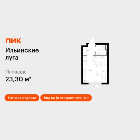 Продаётся квартира-студия площадью 23,9 кв.м на 2 этаже 9 этажного дома (Корпус 3.3, Секция 1) проекта ПИК Ильинские луга. Светлый просторный подъезд на уровне земли, функциональная планировка, большие окна, c отделкой. Жилой район "Ильинские луга" находится в 10 километрах от МКАД по Новорижскому шоссе, в 20 минутах на автомобиле от станций метро "Волоколамская", "Тушинская" и "Строгино". В будущем ближе к проекту, в 9 минутах пути на машине, откроется станция "Ильинская" Рублёво-Архангельской линии, которая будет соединять Арбатско-Покровскую линию и Большую кольцевую линию. Сейчас в квартале начались продажи в корпусах 3.2, 3.3, 3.4, 3.5 и 3.6. "Ильинские луга" — масштабный проект, в который входит девять детских садов, четыре школы и поликлиника. Он строится в престижном и экологичном районе среди лесов и памятников природы. За 5 минут от жилого квартала можно доехать до Рублёво-Успенского шоссе, а за 30 минут — до центра Москвы. До крупного торгового центра "РИГАМОЛЛ" всего 5 минут на автомобиле, а до ТЦ "Твой дом" и гипермаркета "Глобус" — 10 минут. В "Ильинских лугах" строятся только девятиэтажные дома — такая архитектура соответствует спокойной жизни за городом. В каждом дворе-парке есть места для отдыха, детские и спортивные площадки. А ещё, здесь уже открыт большой PlayHub "Гравити" — современное игровое пространство с космической тематикой, холмами, зонами для игр и отдыха жителей любого возраста. На первых этажах уже работают магазины, кафе и пекарни. Места для отдыха от "Ильинских лугов" тоже недалеко: 10 минут на машине — и вы в музее-усадьбе "Архангельское". Также рядом находится Лохин остров — памятник природы, где водятся речные черепахи, есть места для кемпинга и возможность сплавиться по реке. Артикул 993755 (Застройщик ООО "СЗ "ГРАДОЛИМП")