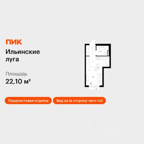 Продаётся квартира-студия площадью 21,8 кв.м на 4 этаже 9 этажного дома (Корпус 3.5, Секция 1) проекта ПИК Ильинские луга. Светлый просторный подъезд на уровне земли, функциональная планировка, большие окна, предчистовая отделка. Жилой район "Ильинские луга" находится в 10 километрах от МКАД по Новорижскому шоссе, в 20 минутах на автомобиле от станций метро "Волоколамская", "Тушинская" и "Строгино". В будущем ближе к проекту, в 9 минутах пути на машине, откроется станция "Ильинская" Рублёво-Архангельской линии, которая будет соединять Арбатско-Покровскую линию и Большую кольцевую линию. Сейчас в квартале начались продажи в корпусах 3.2, 3.3, 3.4, 3.5 и 3.6. "Ильинские луга" — масштабный проект, в который входит девять детских садов, четыре школы и поликлиника. Он строится в престижном и экологичном районе среди лесов и памятников природы. За 5 минут от жилого квартала можно доехать до Рублёво-Успенского шоссе, а за 30 минут — до центра Москвы. До крупного торгового центра "РИГАМОЛЛ" всего 5 минут на автомобиле, а до ТЦ "Твой дом" и гипермаркета "Глобус" — 10 минут. В "Ильинских лугах" строятся только девятиэтажные дома — такая архитектура соответствует спокойной жизни за городом. В каждом дворе-парке есть места для отдыха, детские и спортивные площадки. А ещё, здесь уже открыт большой PlayHub "Гравити" — современное игровое пространство с космической тематикой, холмами, зонами для игр и отдыха жителей любого возраста. На первых этажах уже работают магазины, кафе и пекарни. Места для отдыха от "Ильинских лугов" тоже недалеко: 10 минут на машине — и вы в музее-усадьбе "Архангельское". Также рядом находится Лохин остров — памятник природы, где водятся речные черепахи, есть места для кемпинга и возможность сплавиться по реке. Артикул 1001363 (Застройщик ООО "СЗ "ГРАДОЛИМП")